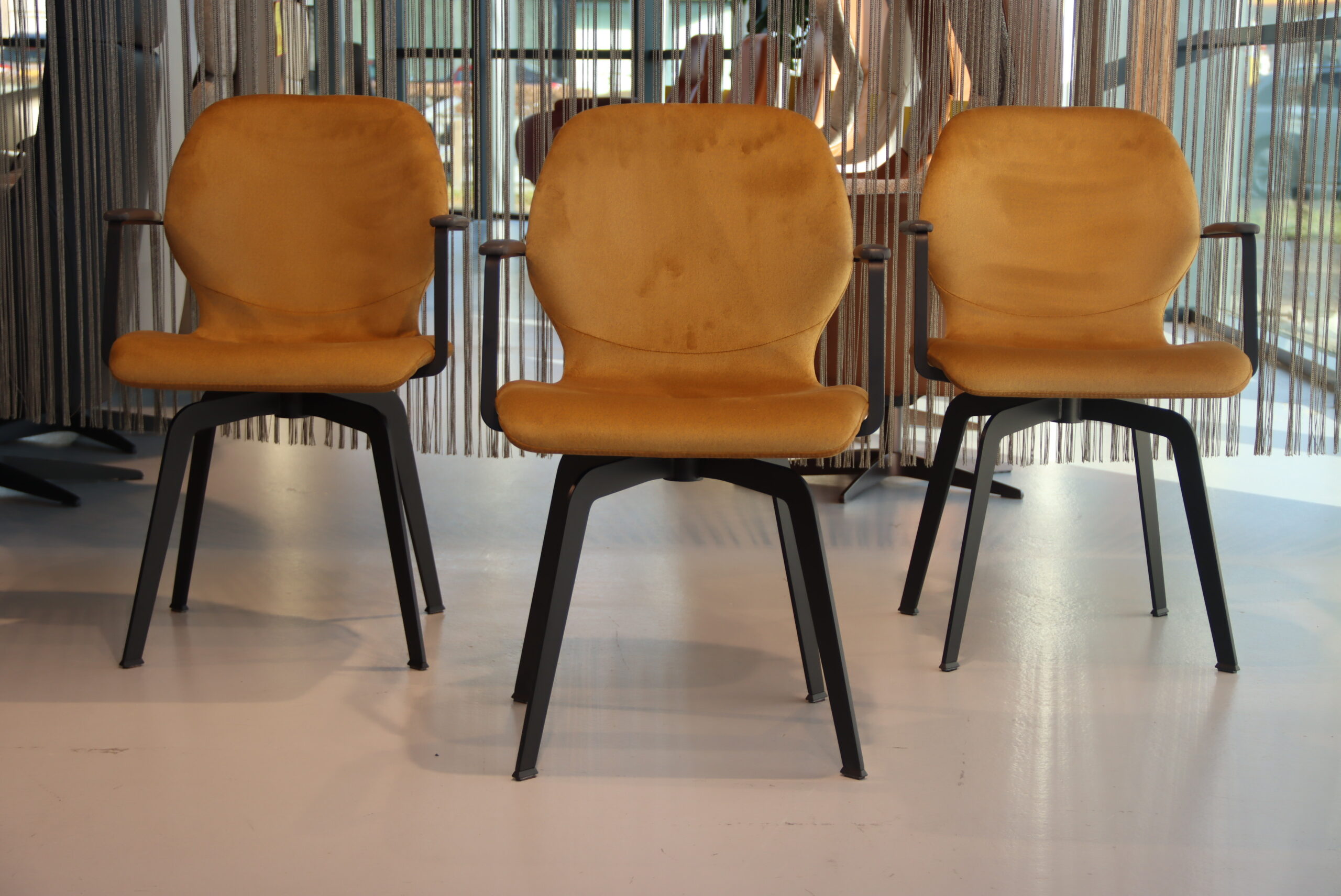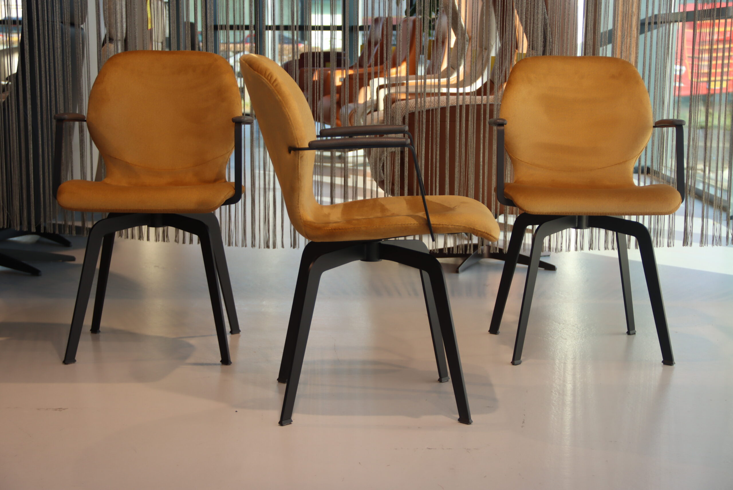 Uitvoering: Stof kleur oker, armleggers leer antraciet