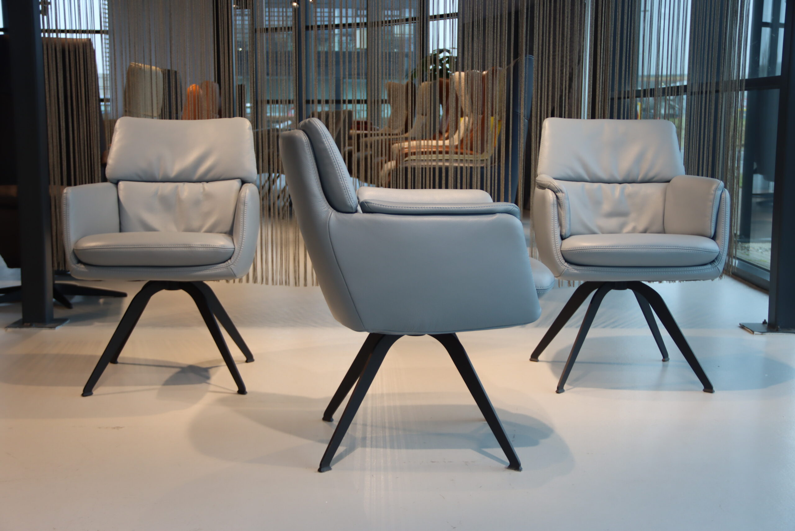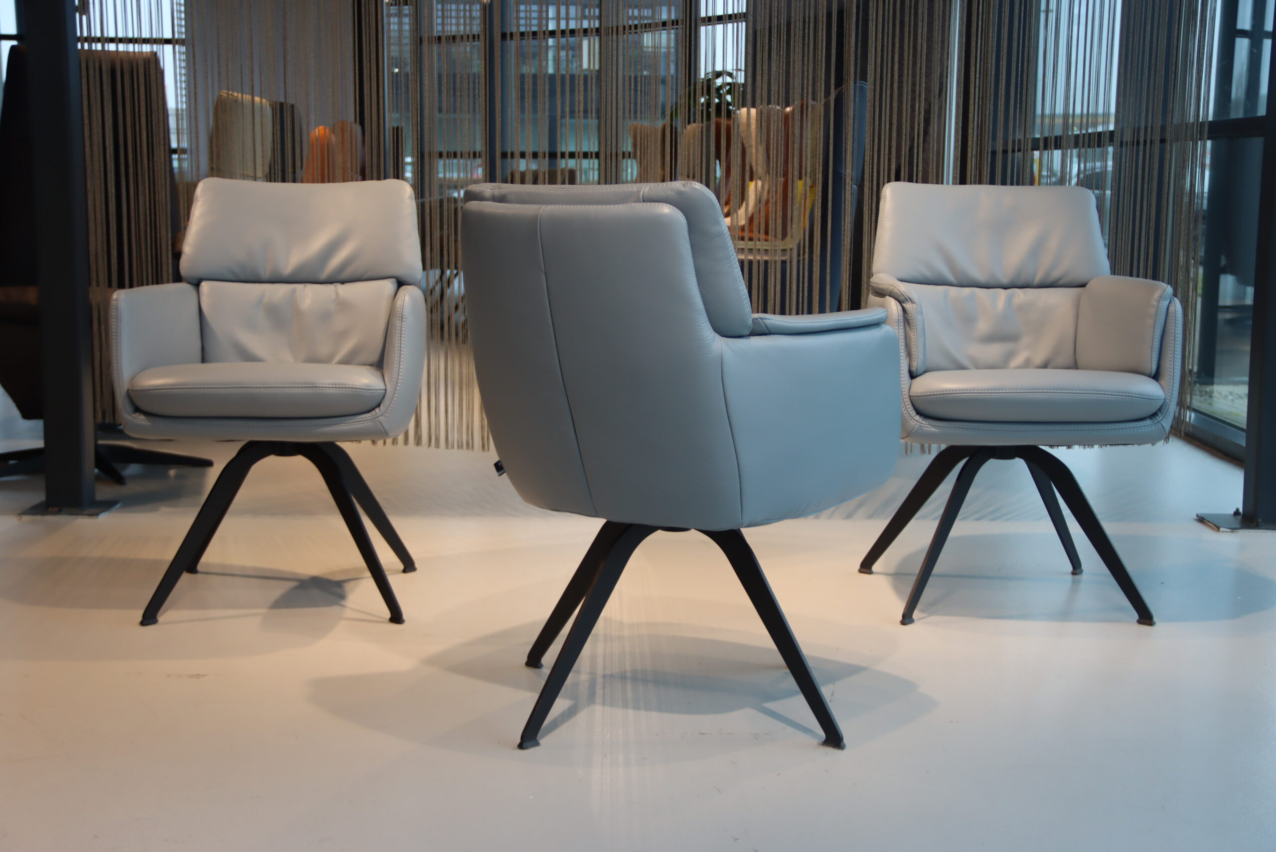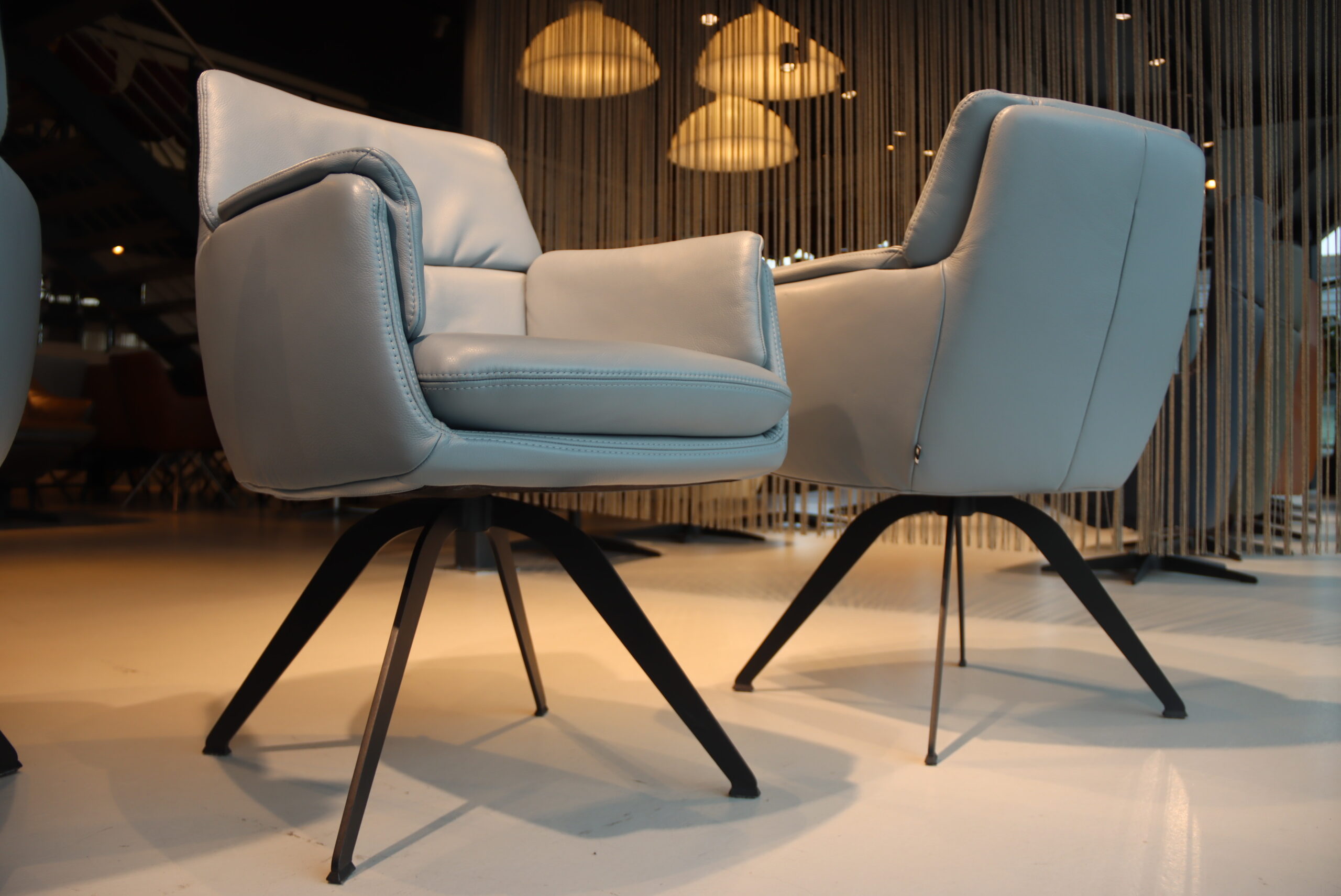 3x Gealux Phill eetkamerstoel in Leer Polo kleur Blauw met draai functie. Direct leverbaar.