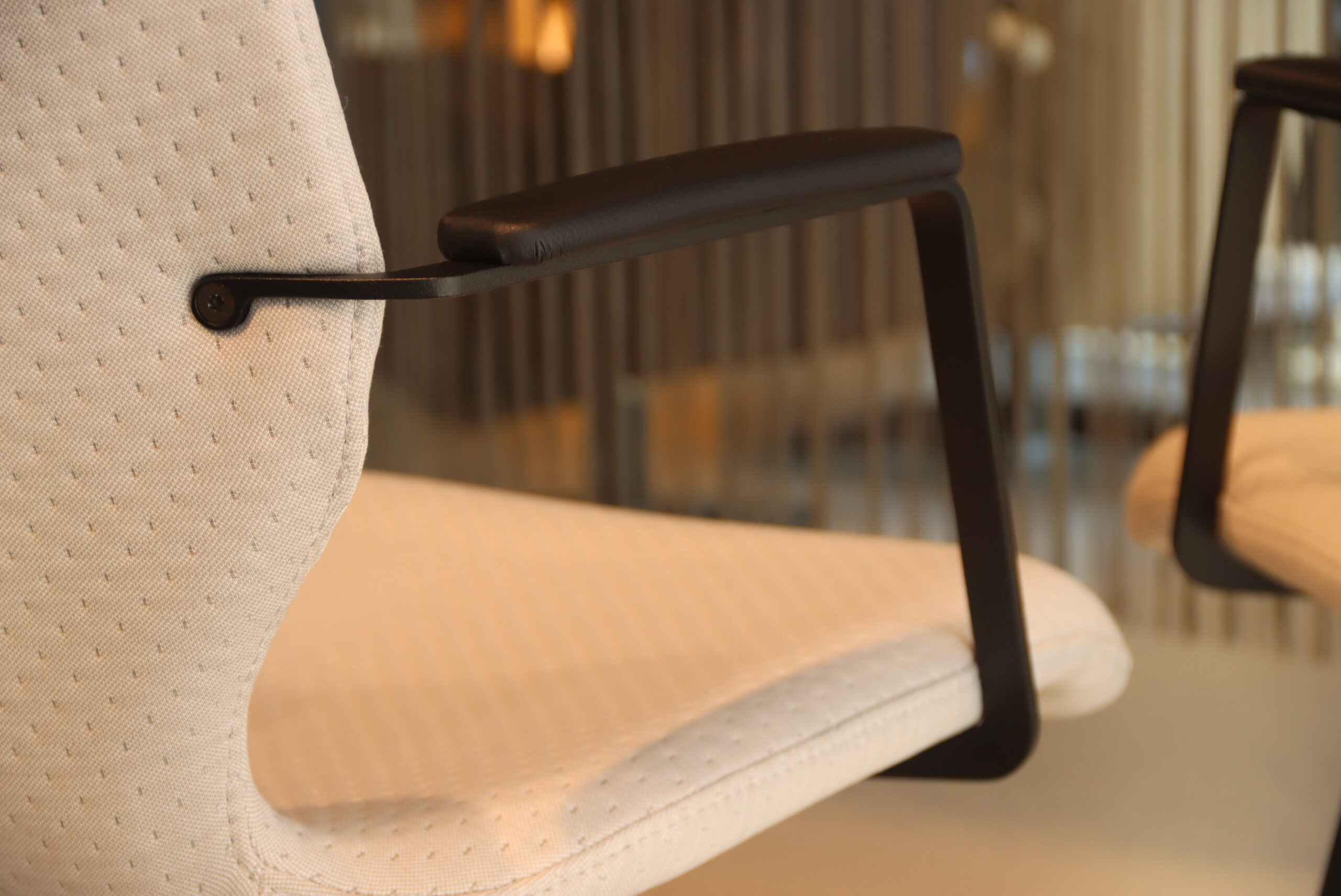 Uitvoering: Stof Keymar Vision kleur l.grijs met leren arm leggers kleur Zwart.