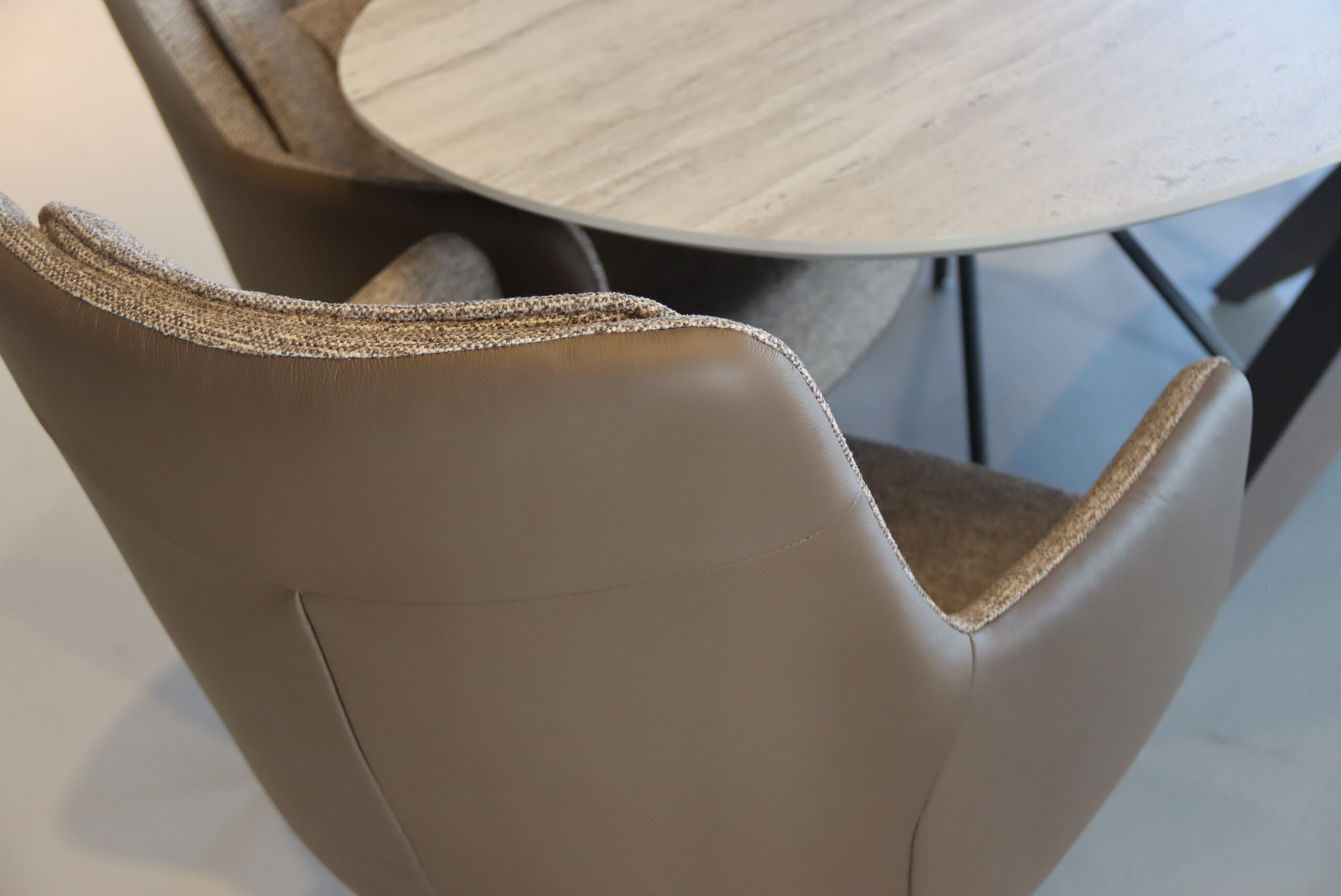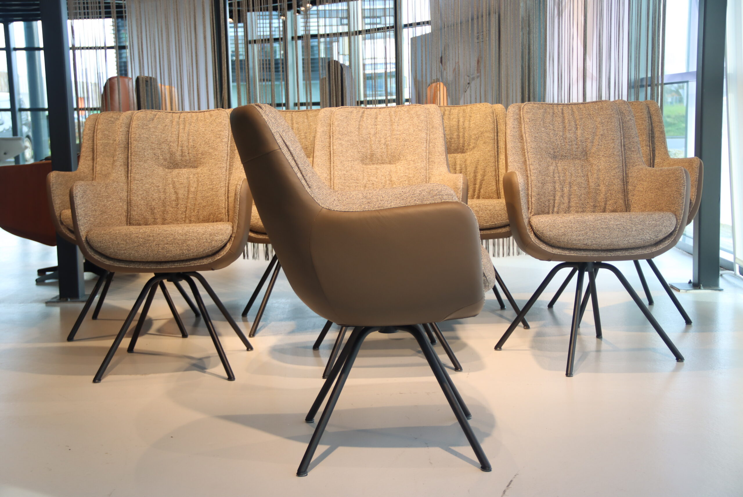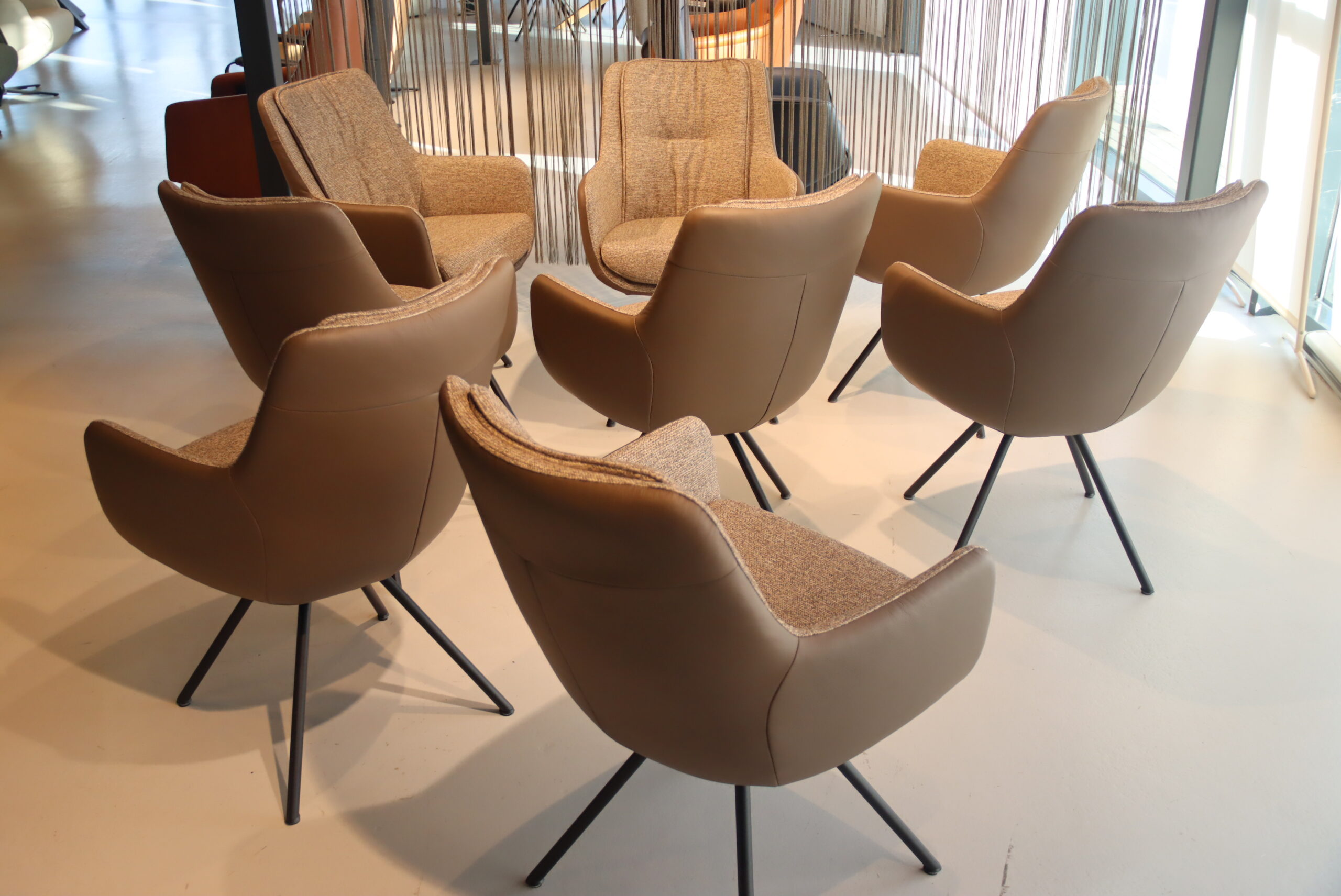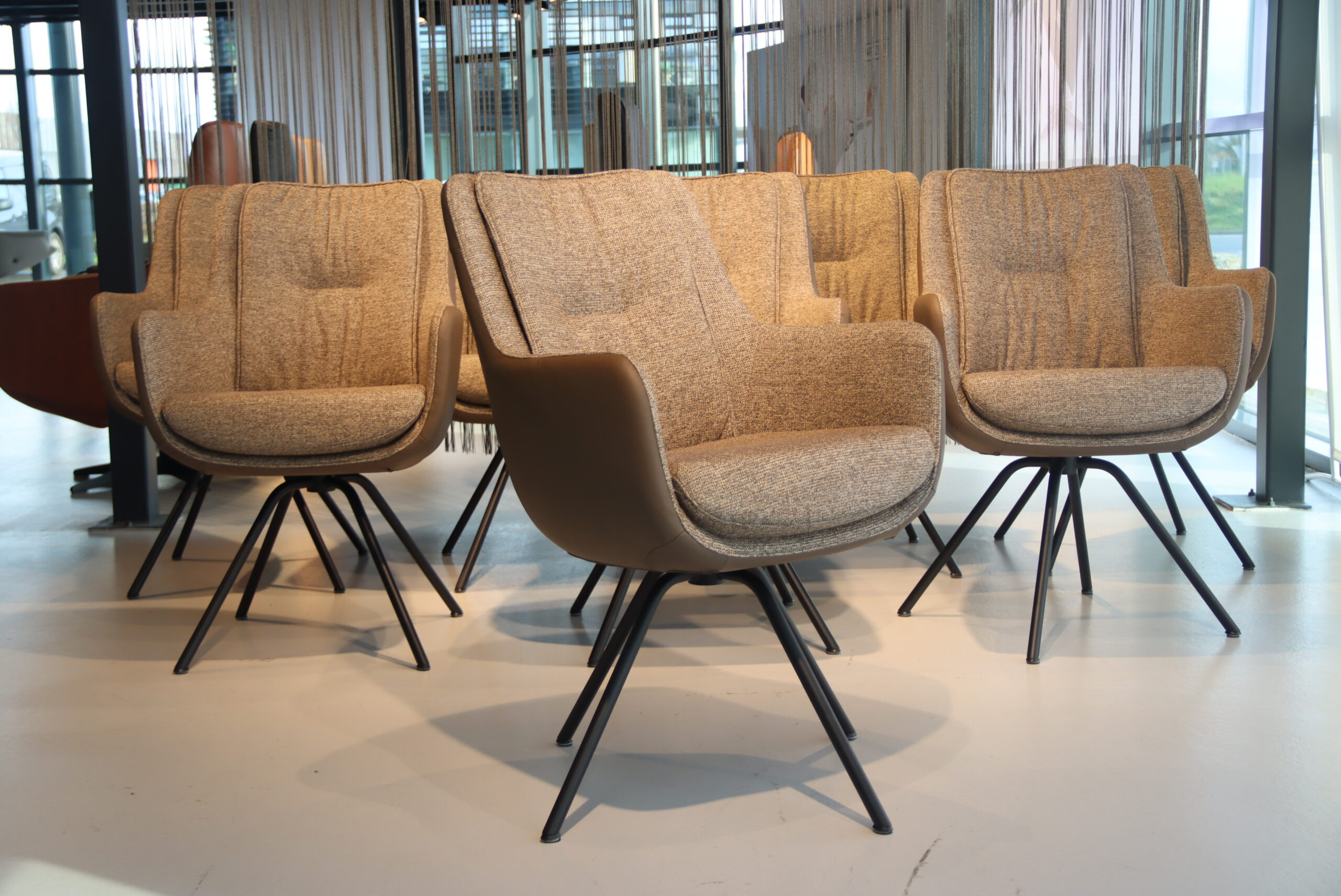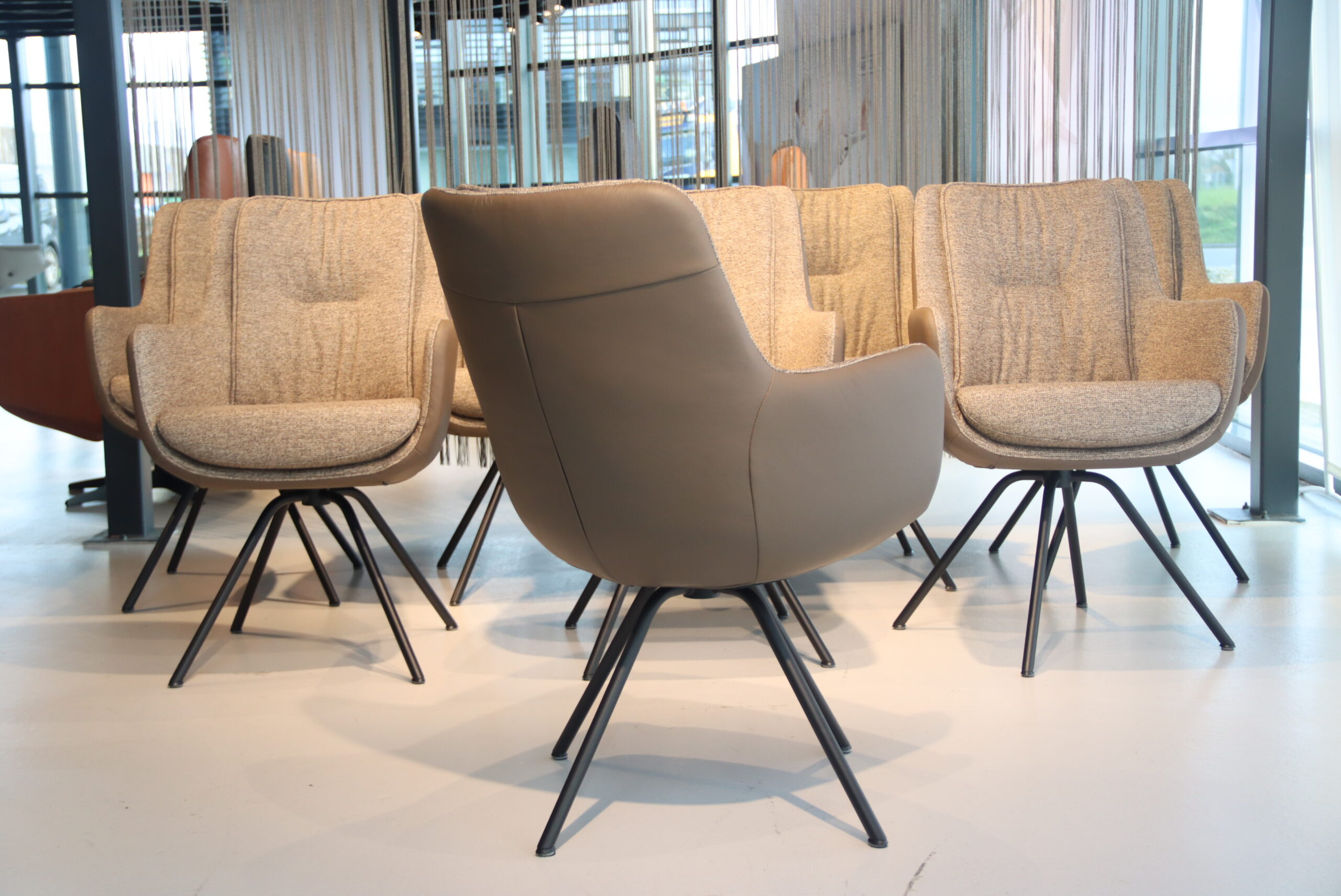 4/6/8/10 Gealux Francisco (Miami/ Sanne / Gareth / Seattle met dekje) eetkamerstoel draai combi leer/stof. Direct uit voorraad leverbaar.