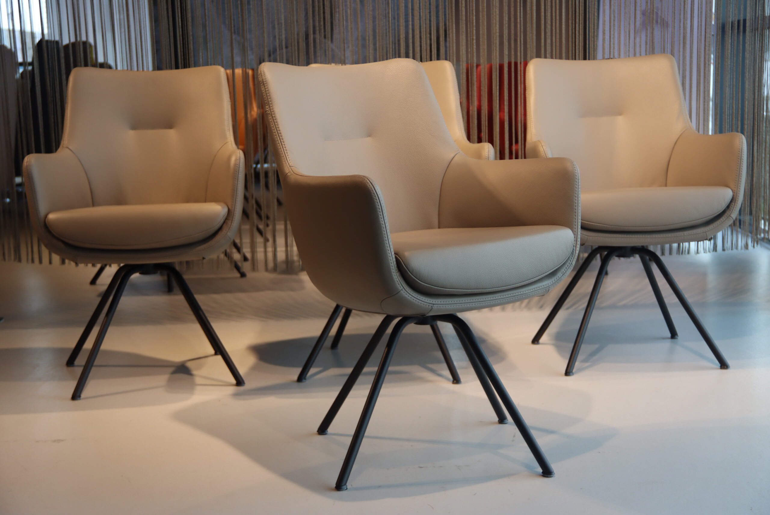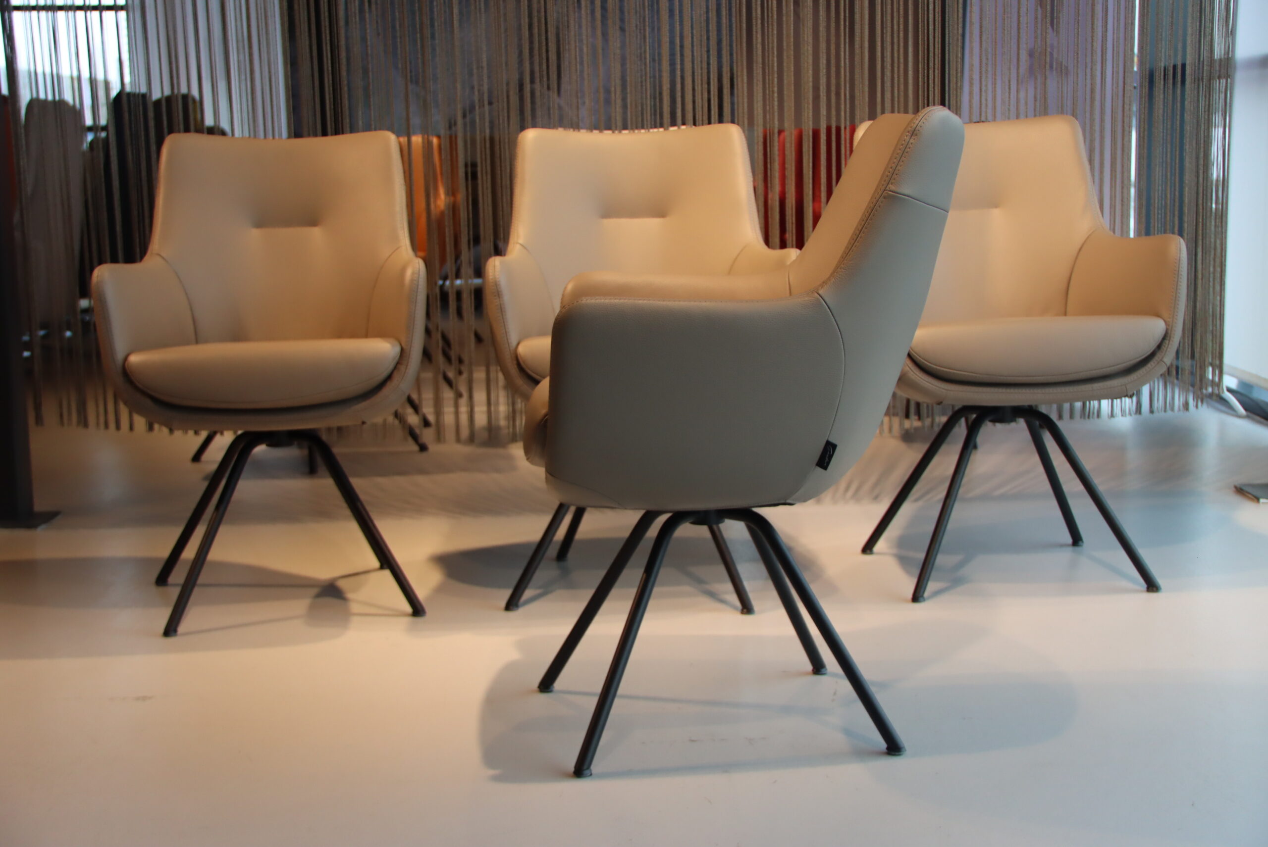 Model: Eetkamerstoel Miami/Movani Sanne/Seattle of de Gareth van Lederland verschillende benamingen voor de zelfde stoel van Gealux.