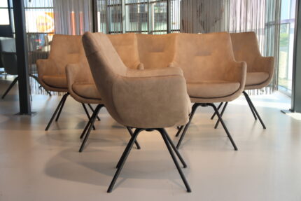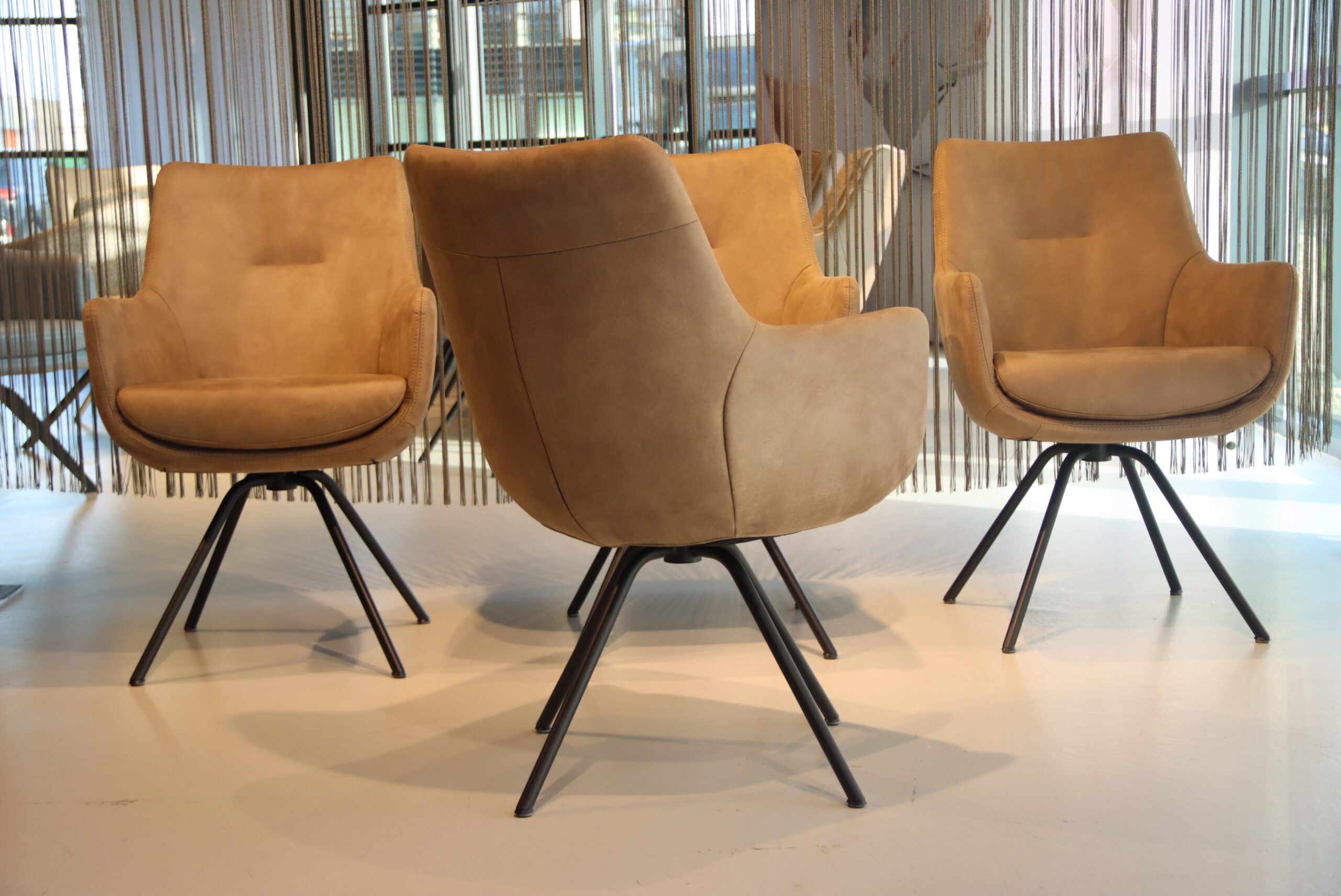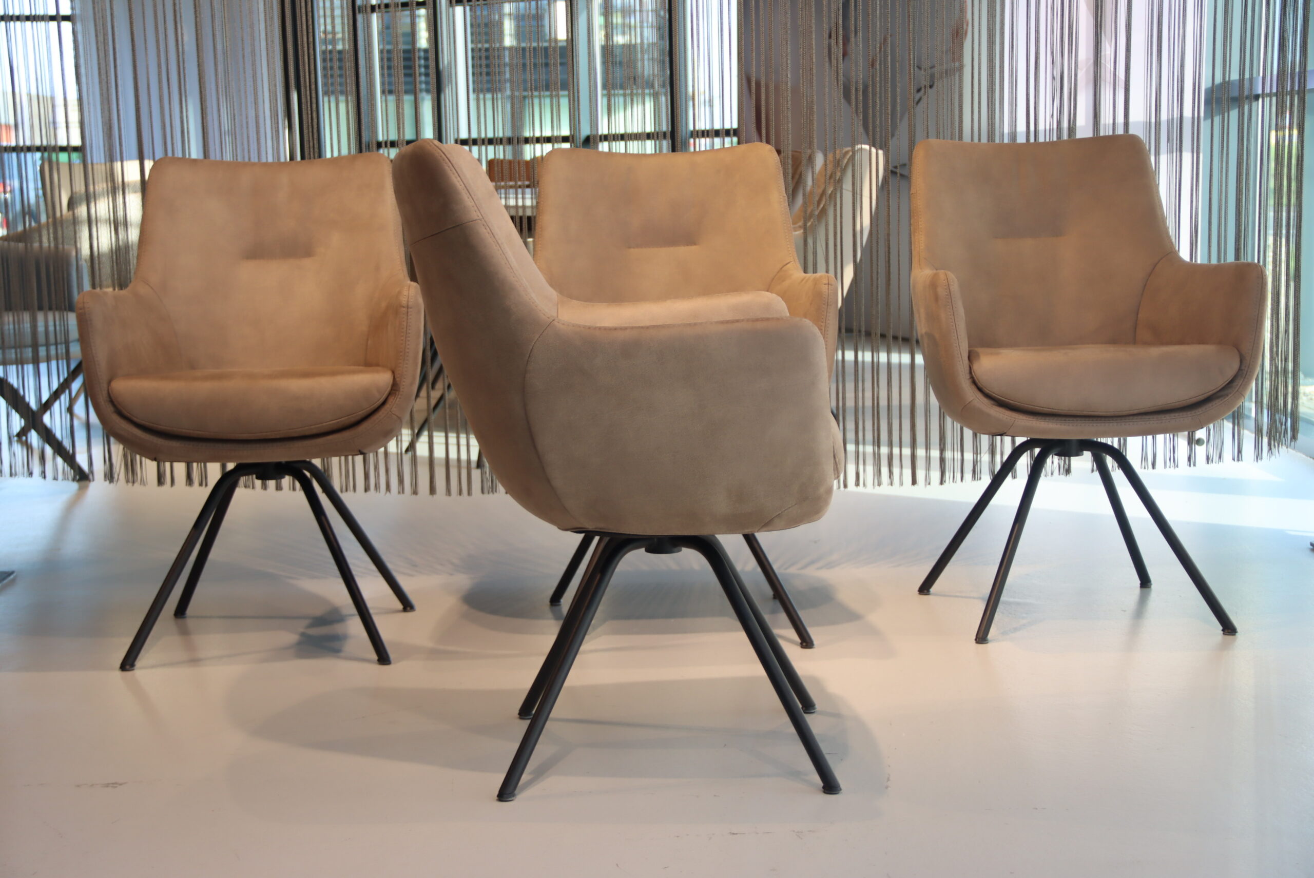 4x Gealux Miami/ Sanne / Gareth / Seattle eetkamerstoel draai in Stof kleur liver/Zand. Direct uit voorraad leverbaar.