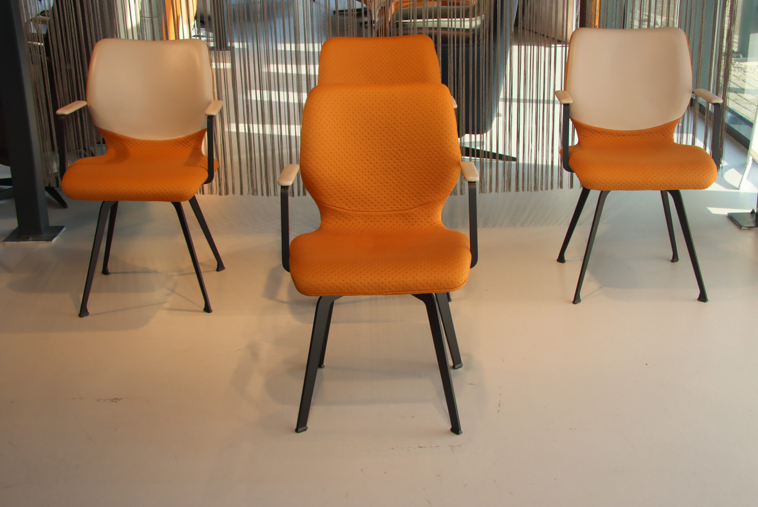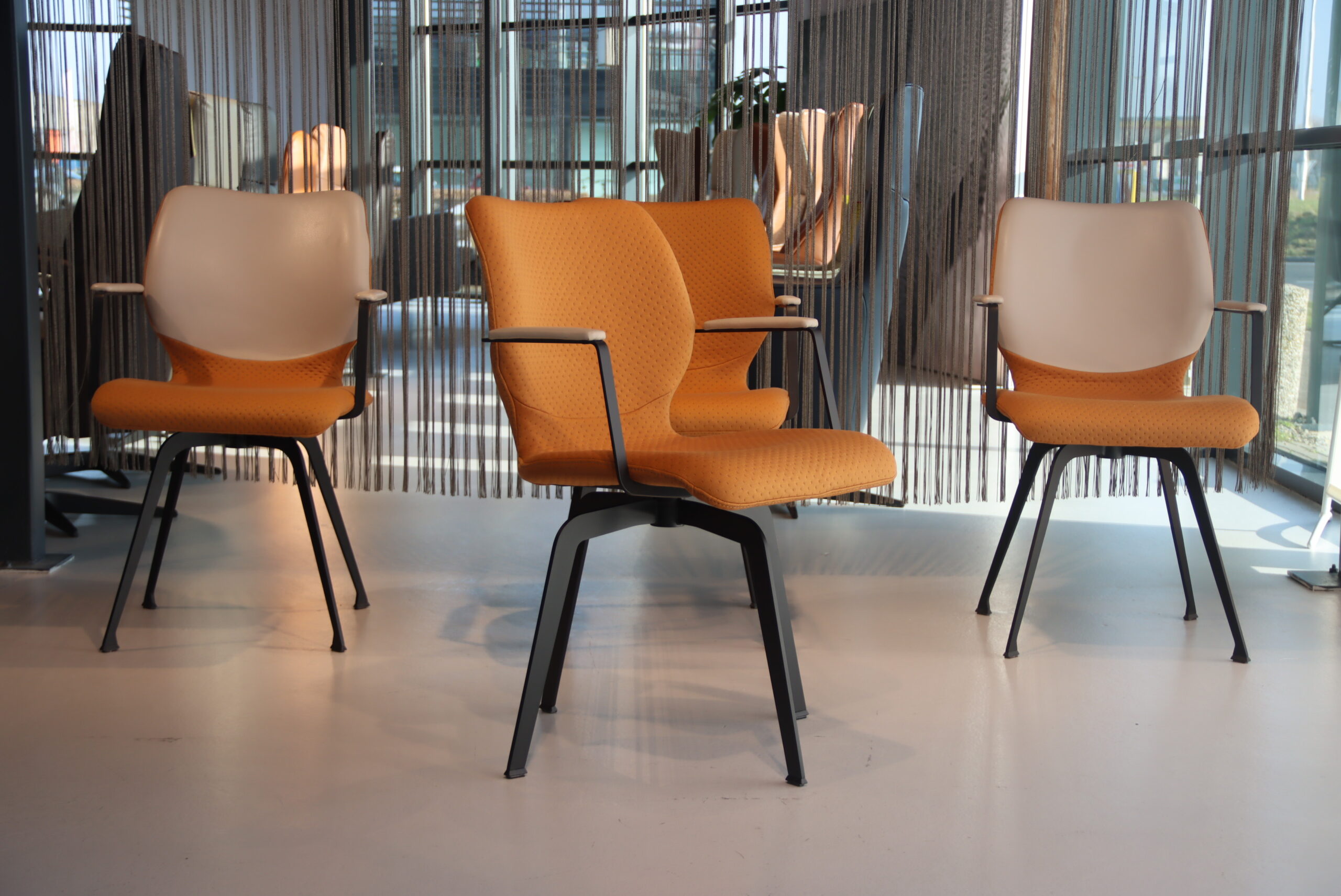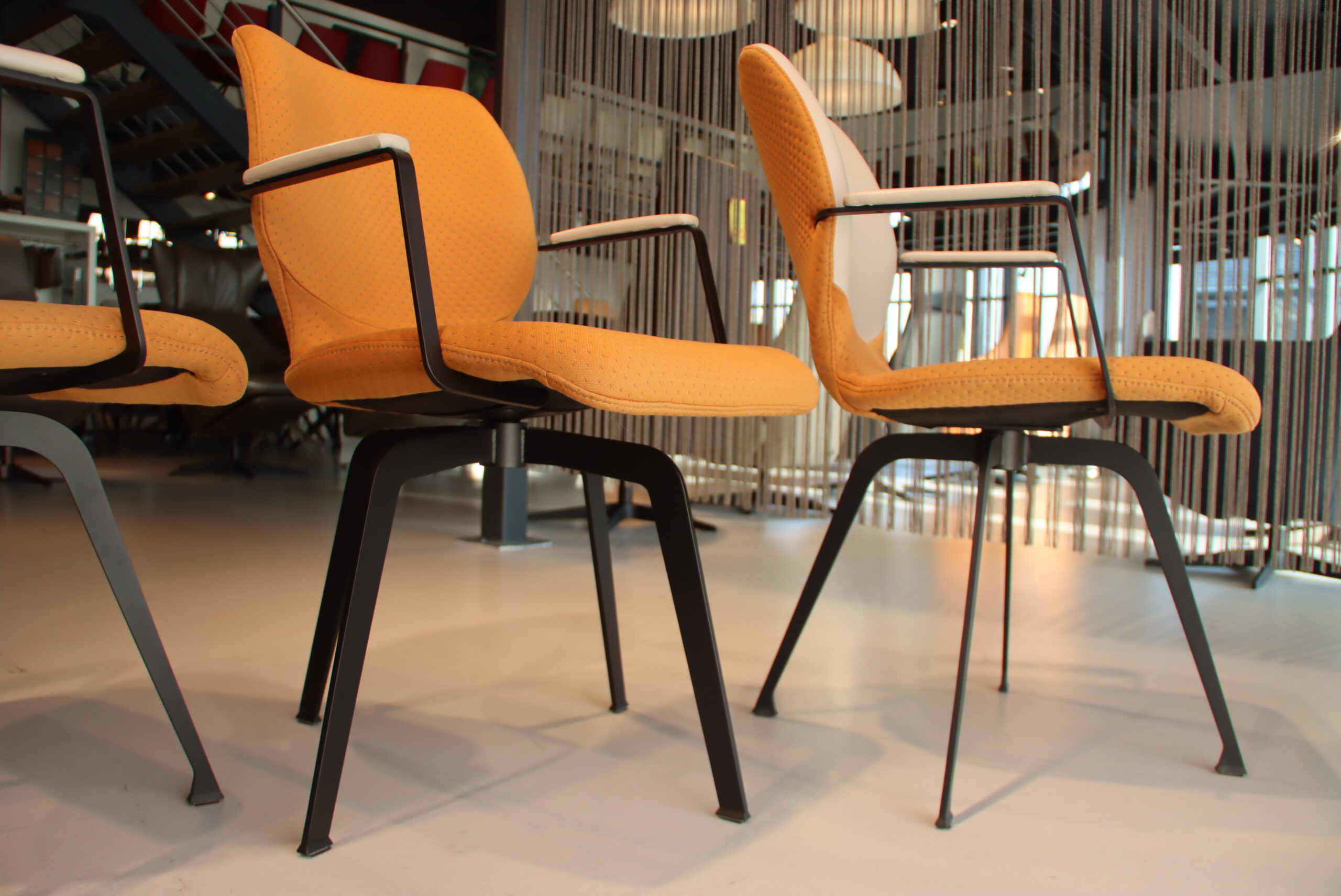 - 2x Stof Keymar Vision orange, armleuningen polo leer beige.