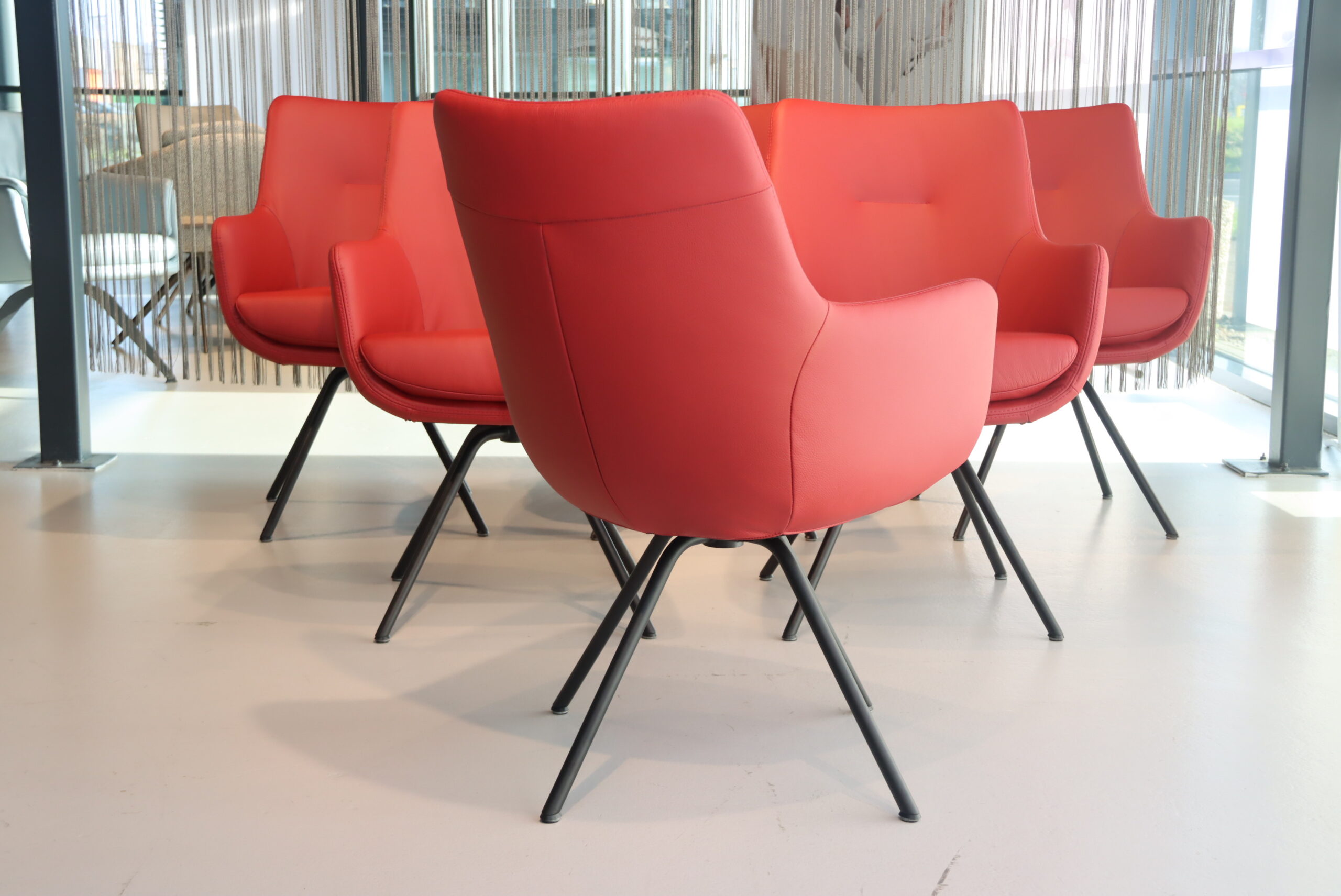 6x Gealux Miami/ Sanne / Gareth / Seattle eetkamerstoel draai in leer kleur Rood. Direct uit voorraad leverbaar.