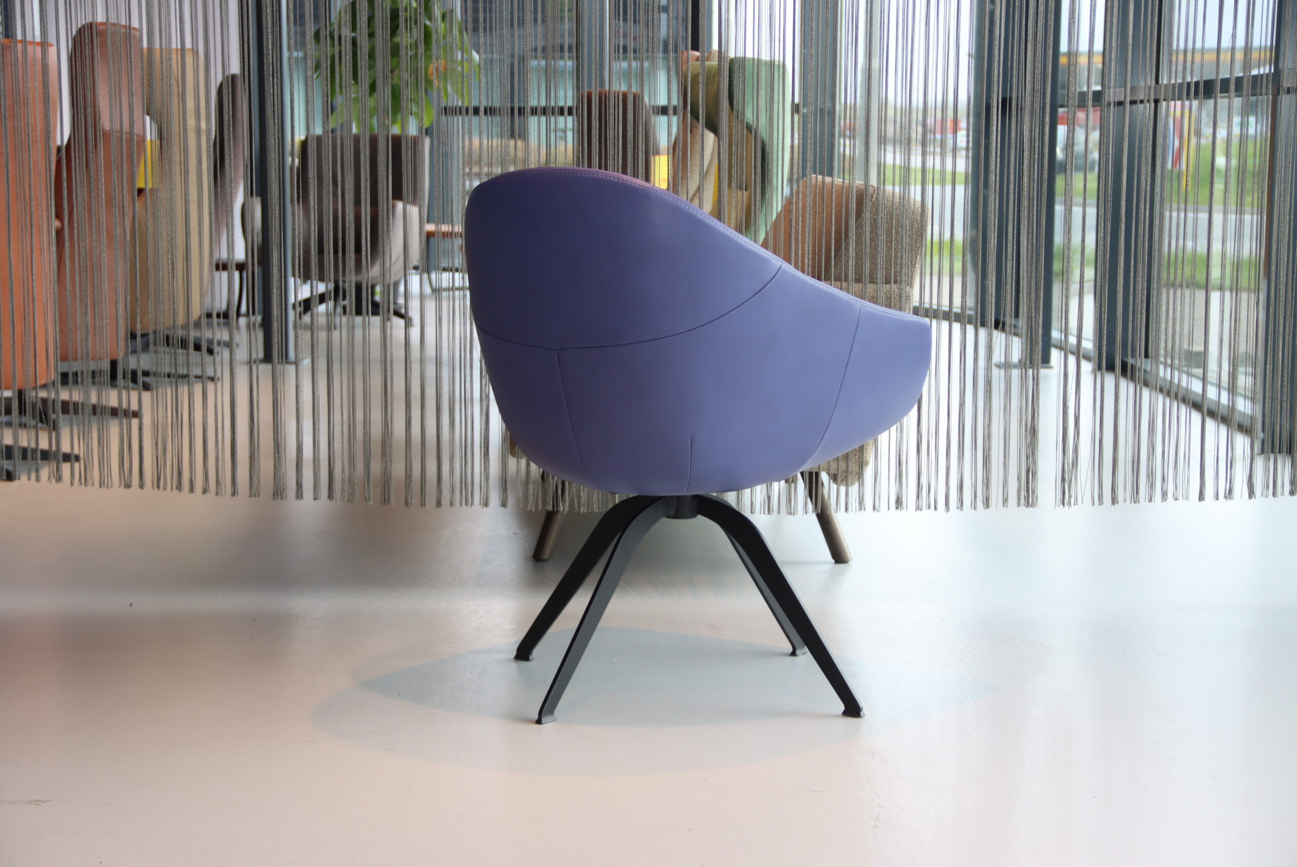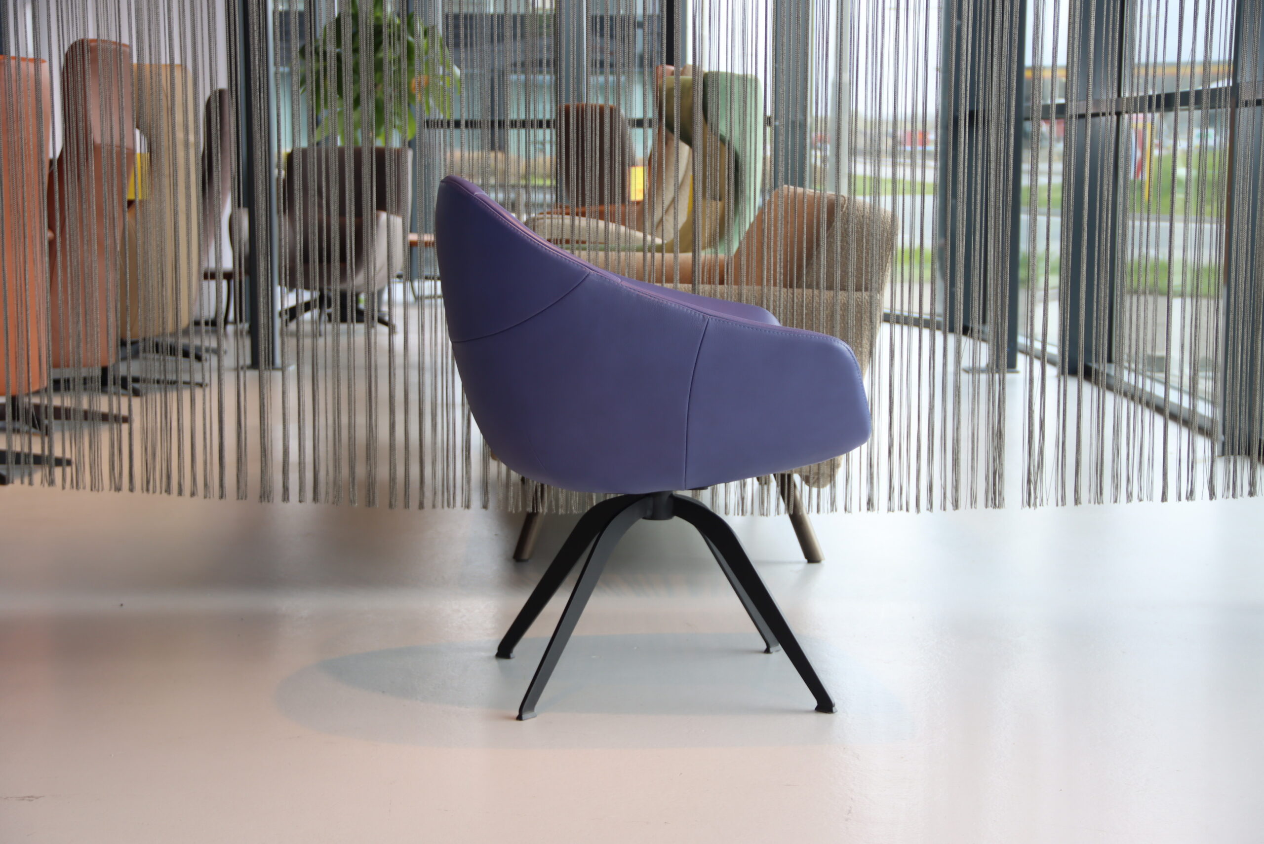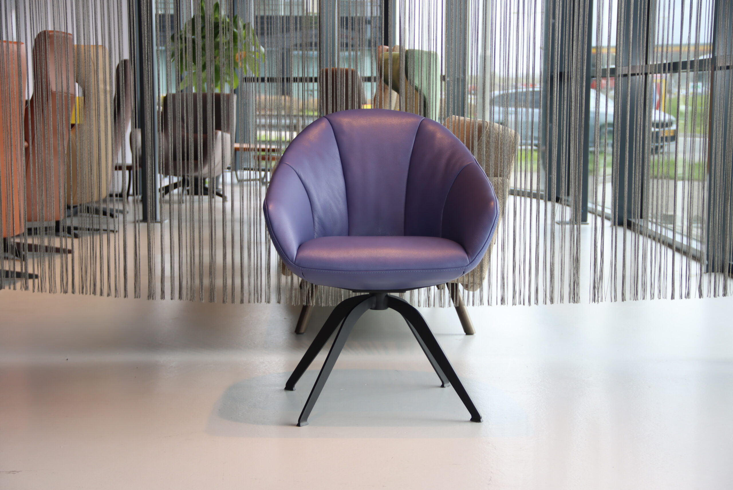 Bijzetfauteuil Levi Gealux draaifunctie met hoge zit in leder Supreme kleur Lavendel. Direct Leverbaar.