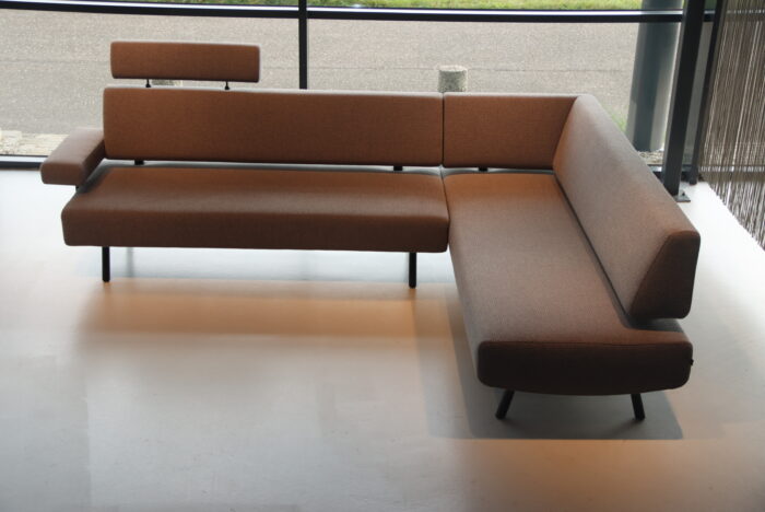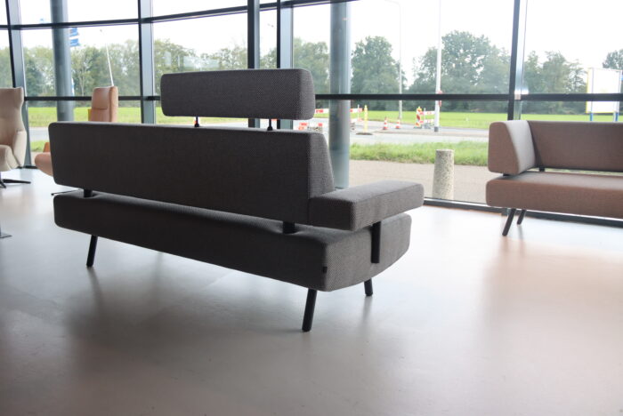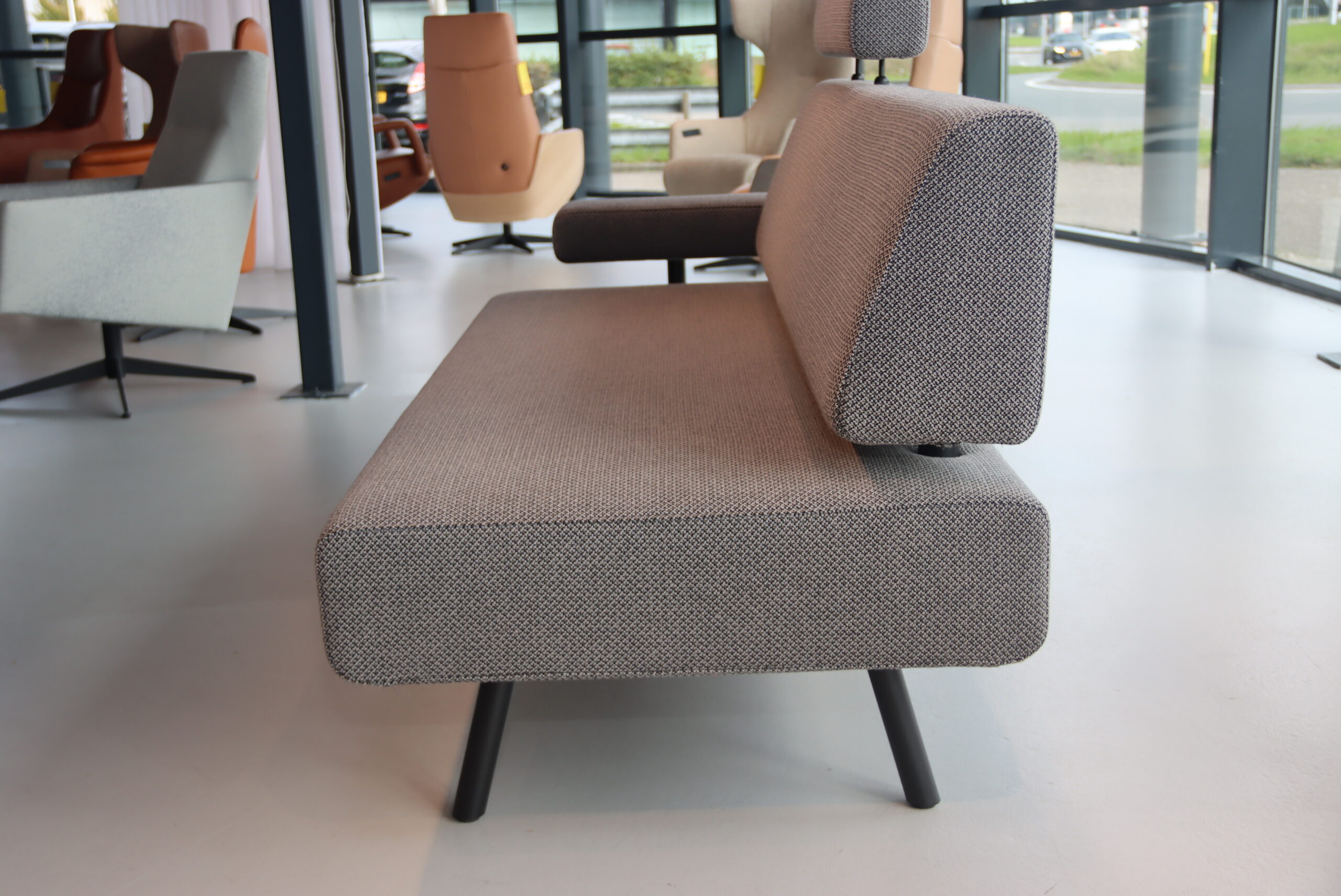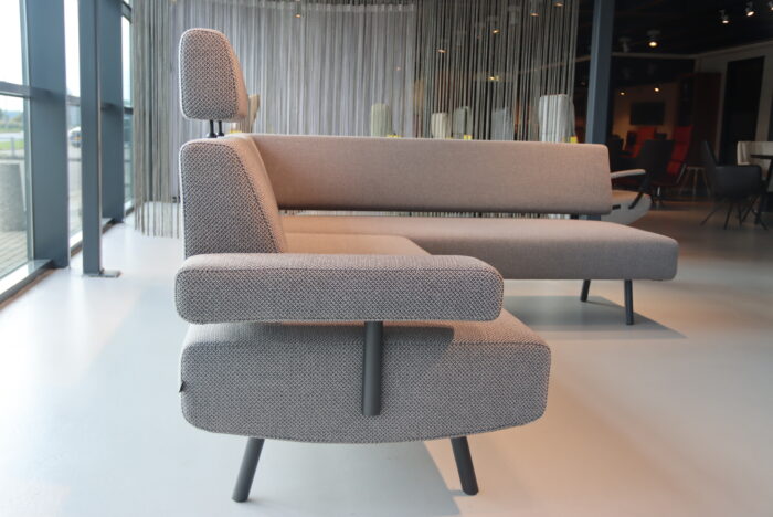 Uitvoering: 3 zits v.staand arm links + hoekelement rechts + in hoogte verstelbaar hoofdsteun.