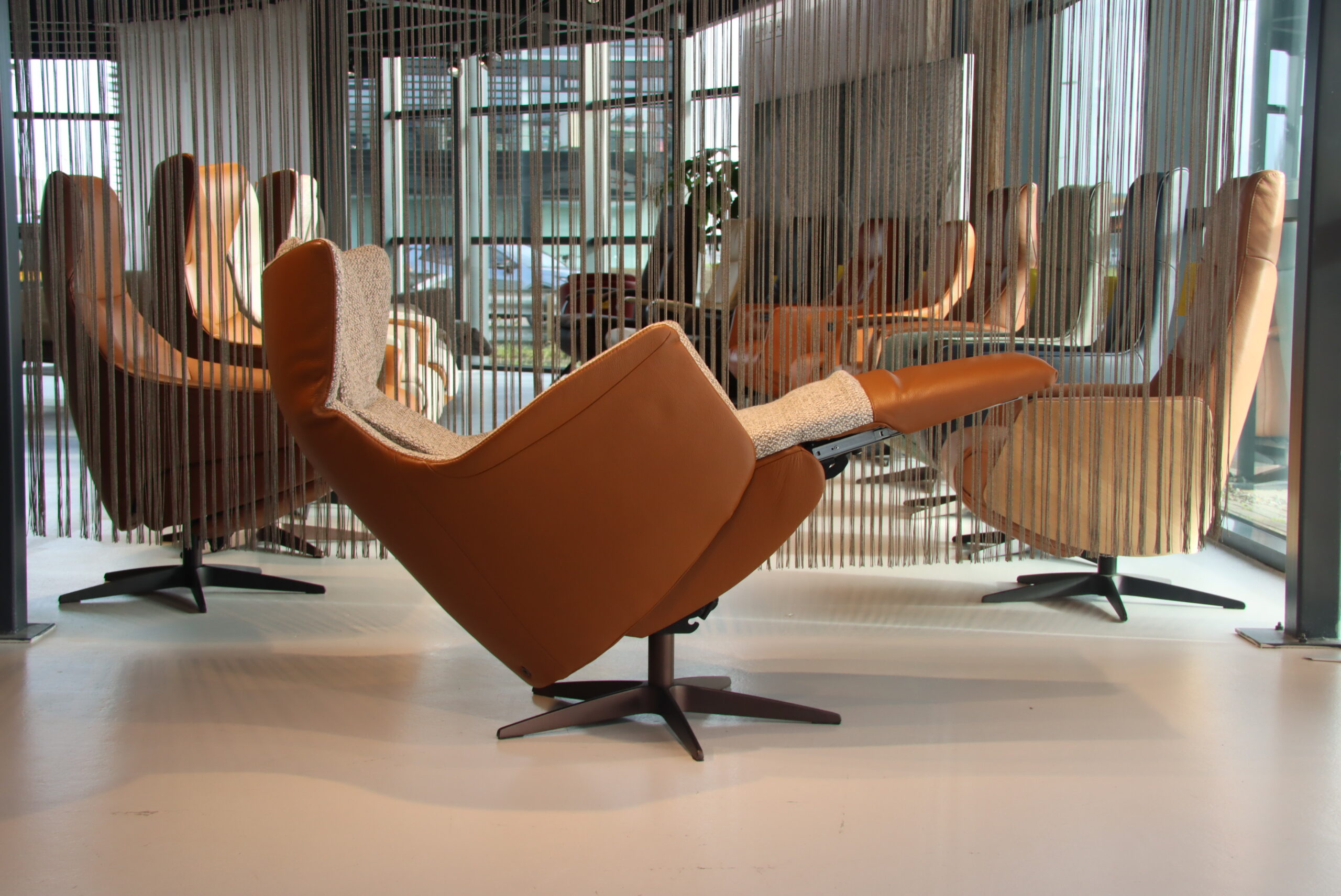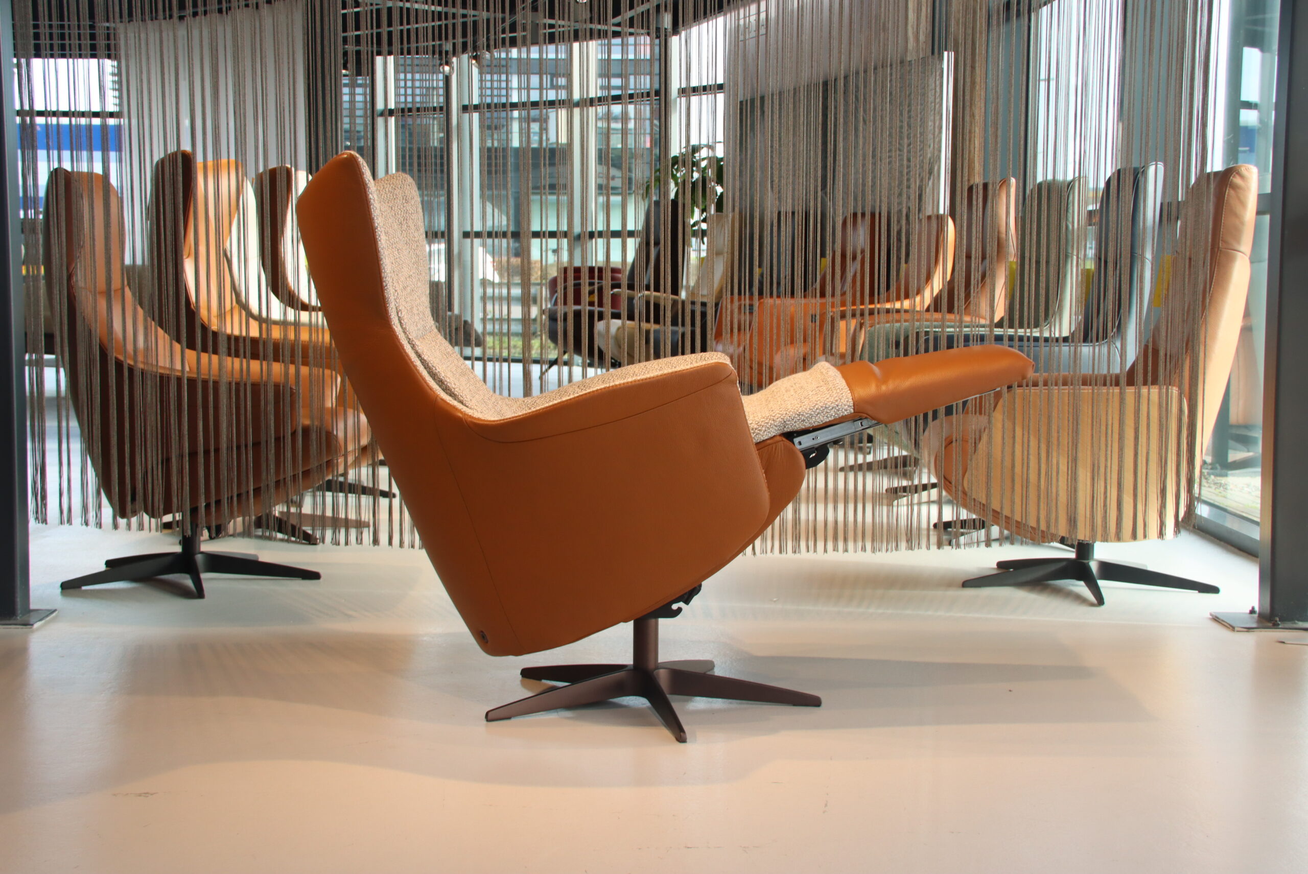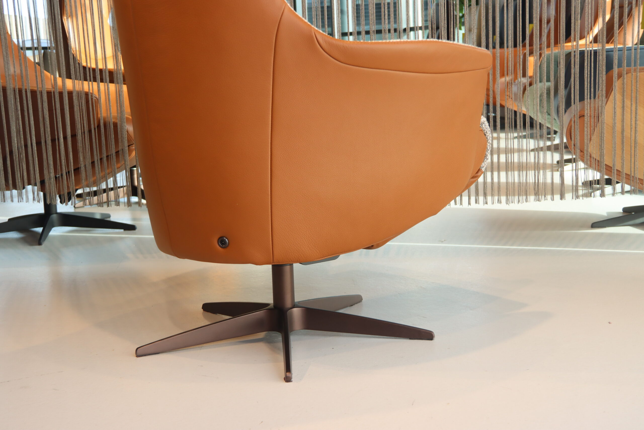 Bekleding : Buitenkant in rundleer Elegance kleur Cognac en de binnenkant is in stof Lathuile 03