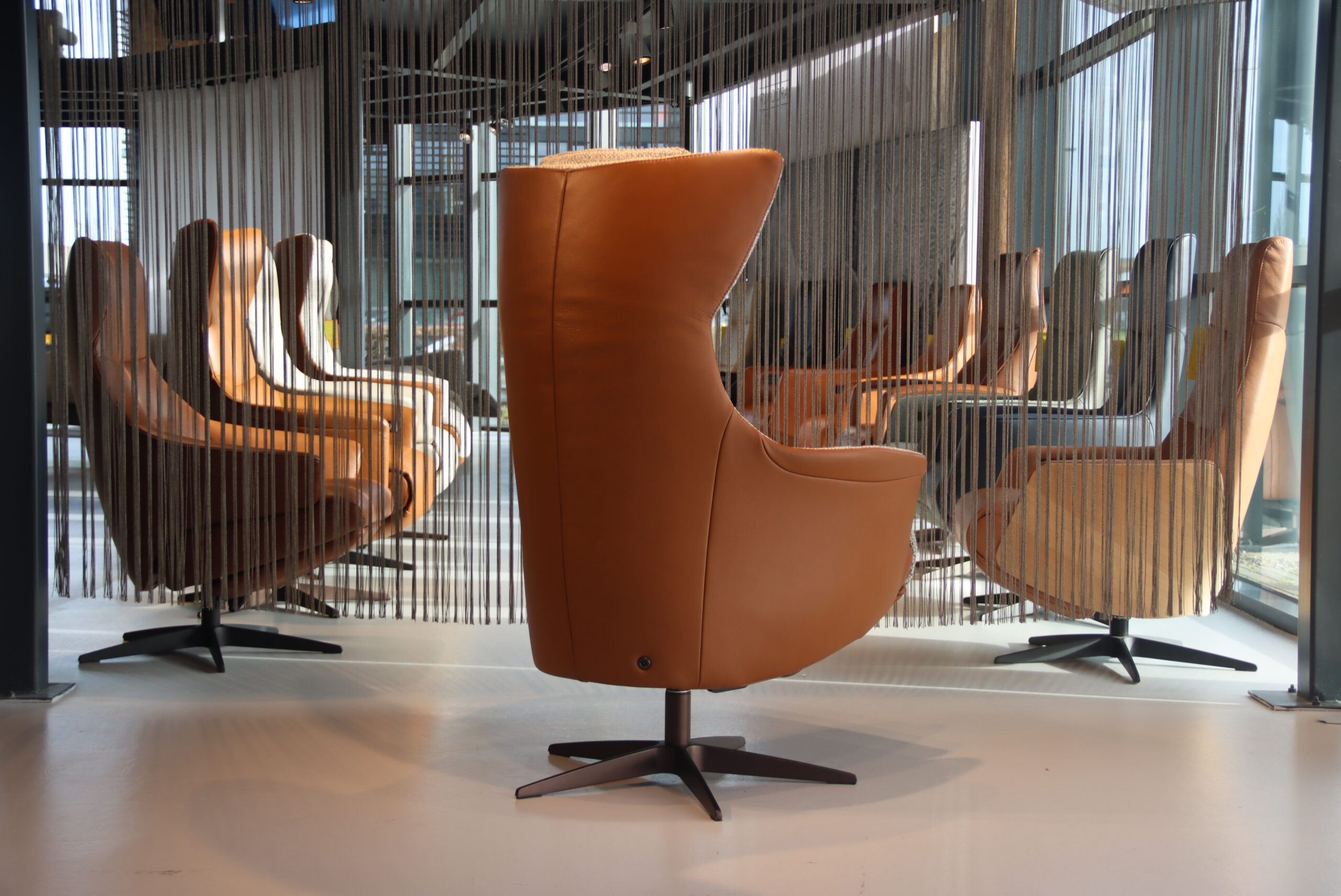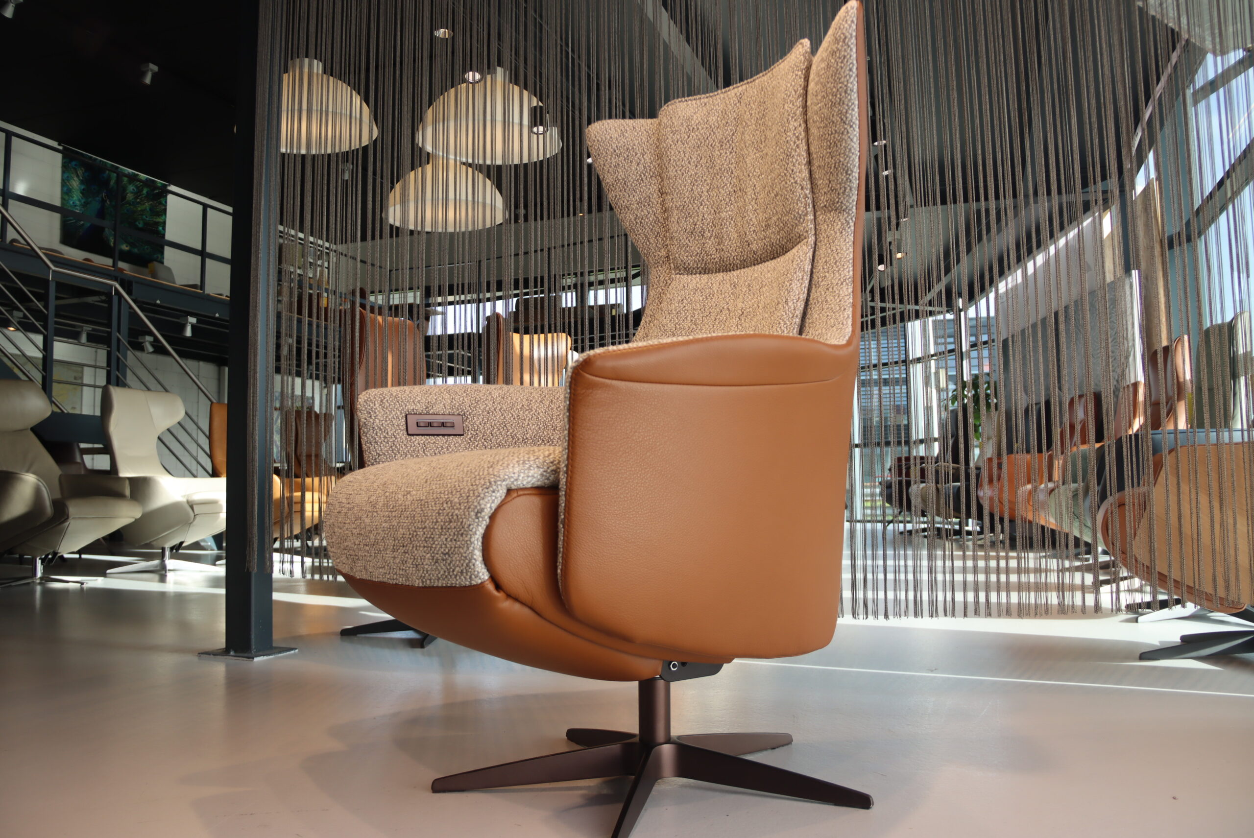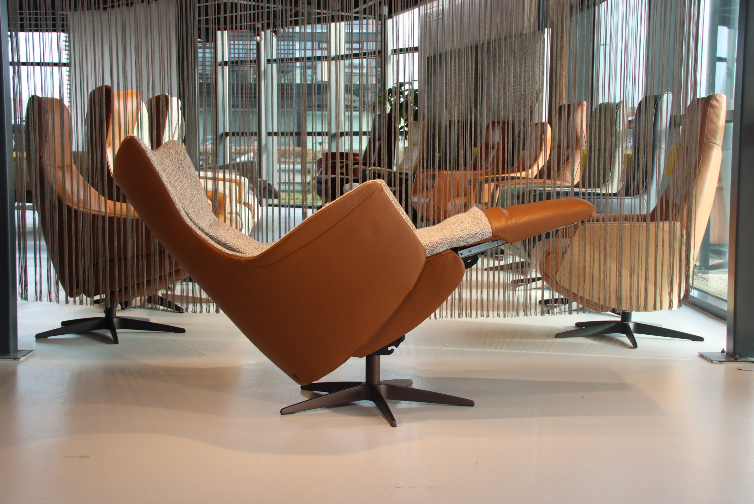 Bekleding : Buitenkant in rundleer Elegance kleur Cognac en de binnenkant is in stof Lathuile 03