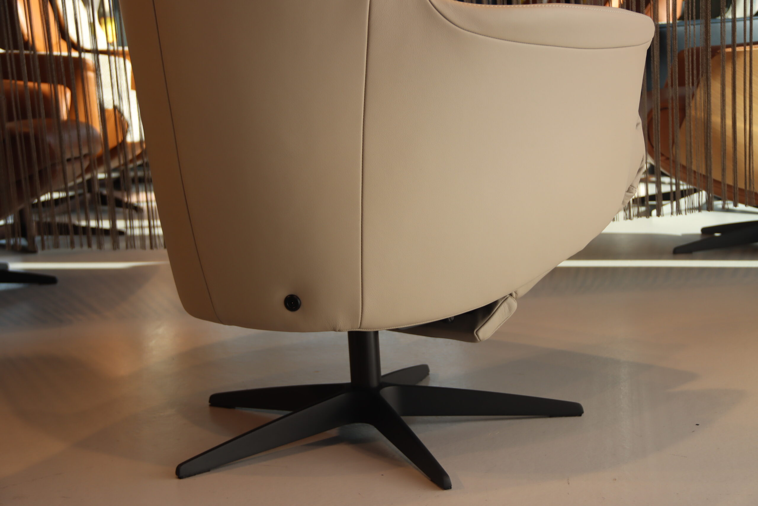 Bekleding : In de hogere cat. soepel rundleder Polo kleur 1027 ivoor.