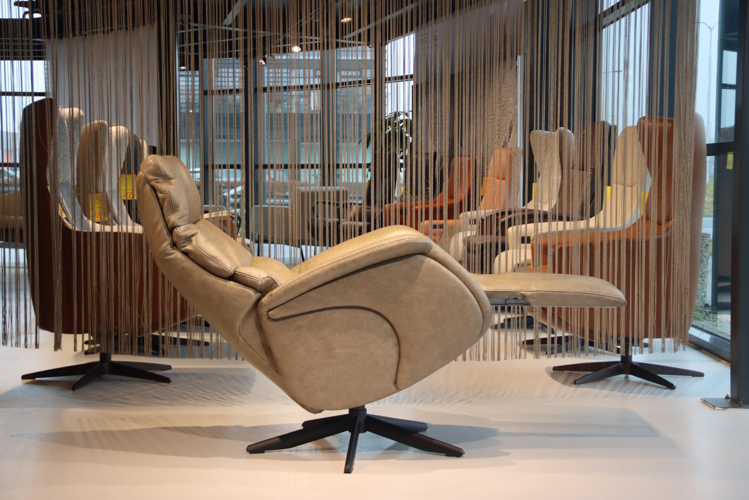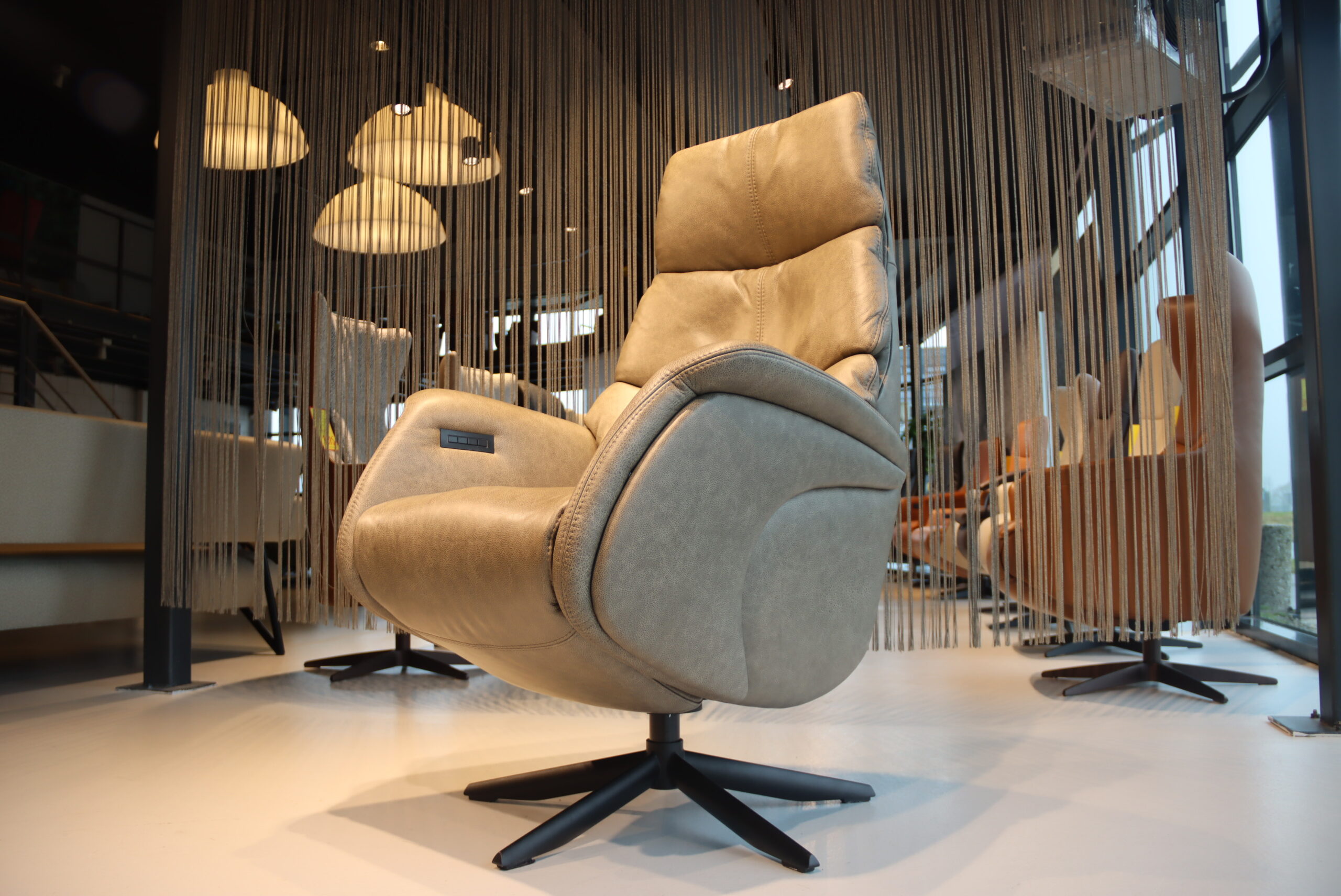 Elektrisch verstelbaar relaxfauteuil/relaxstoel met Sta op hulp/Sta op stoel Twice Pro TW-038N van meubelfabriek De Toekomst in Leer Rebound kleur Taupe met 3 motoren en een accu. Direct leverbaar.