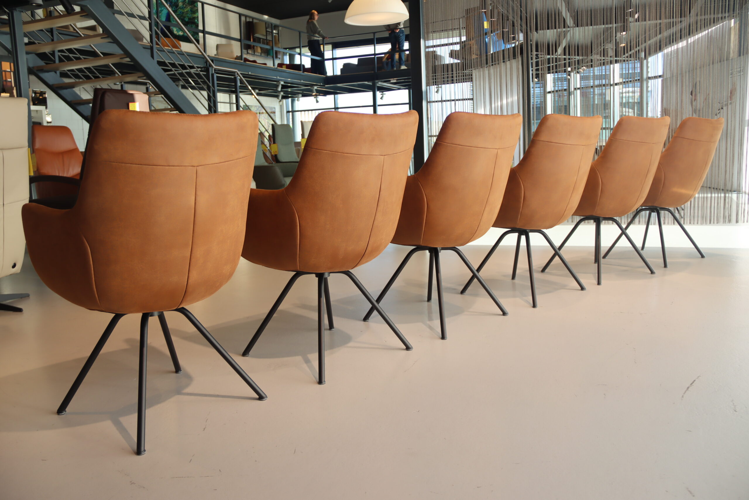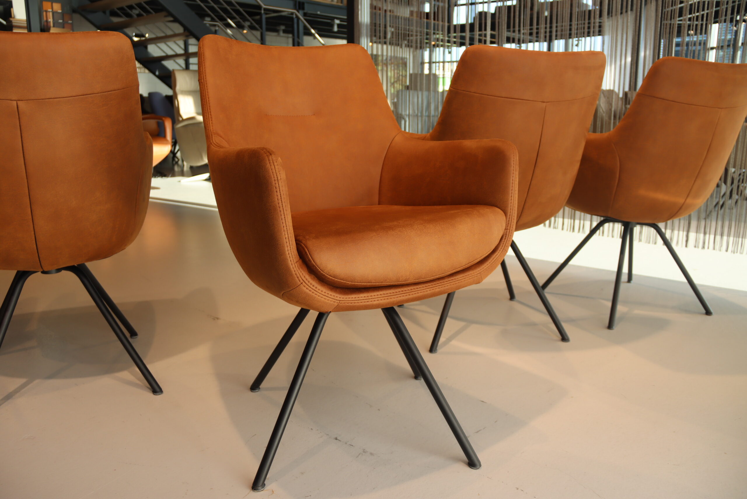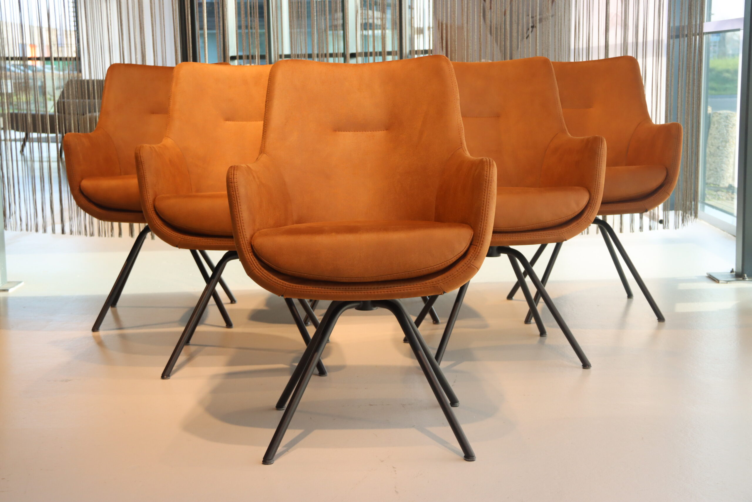 6x Gealux Miami/ Sanne / Gareth / Seattle eetkamerstoel draai in Stof kleur Cognac. Direct uit voorraad leverbaar.