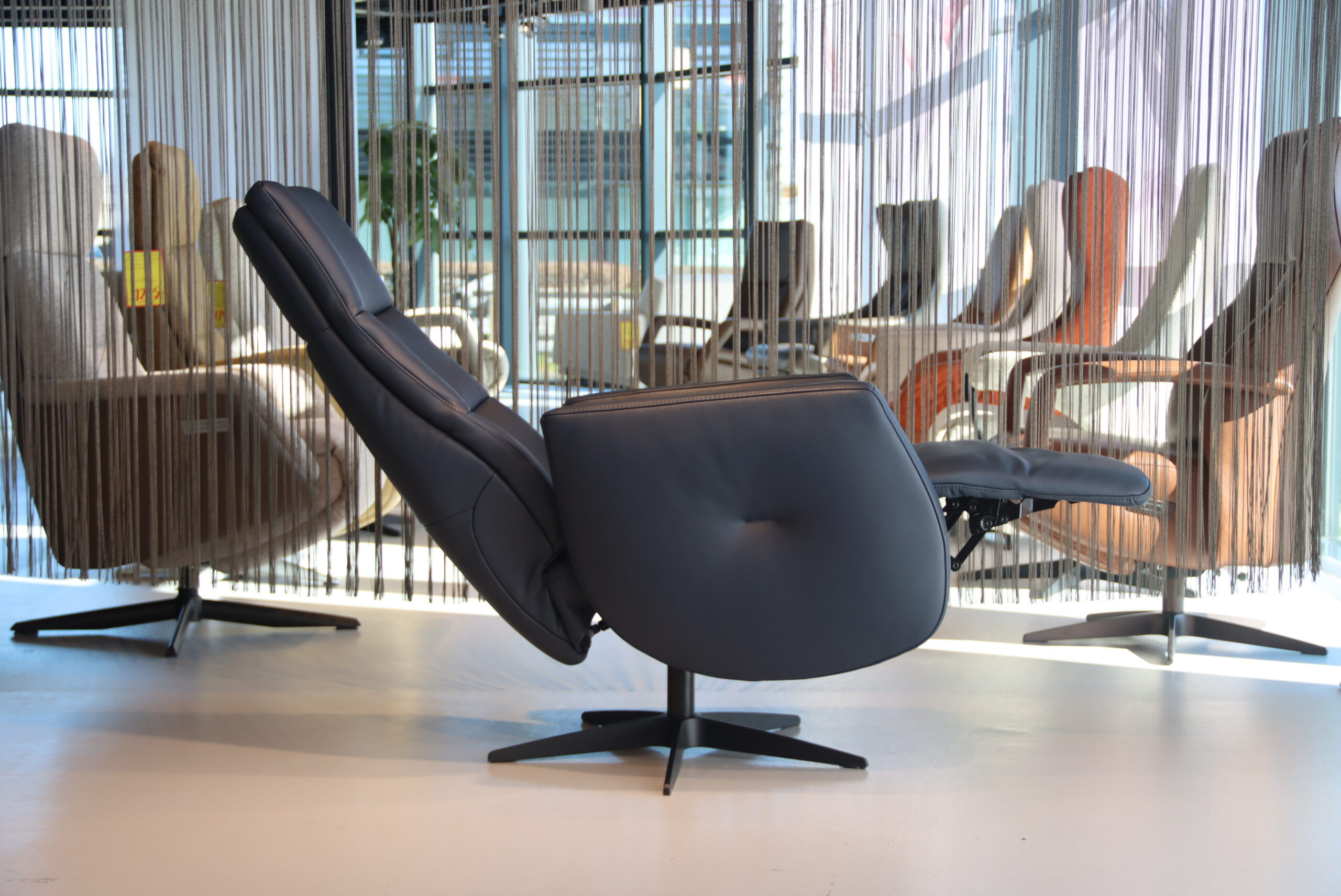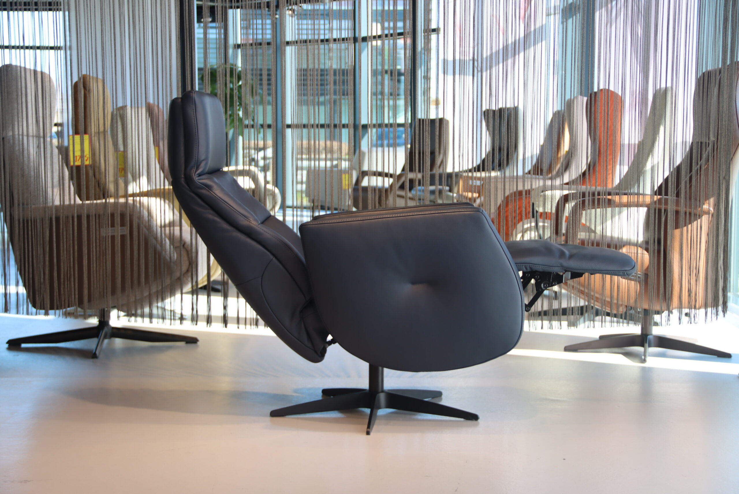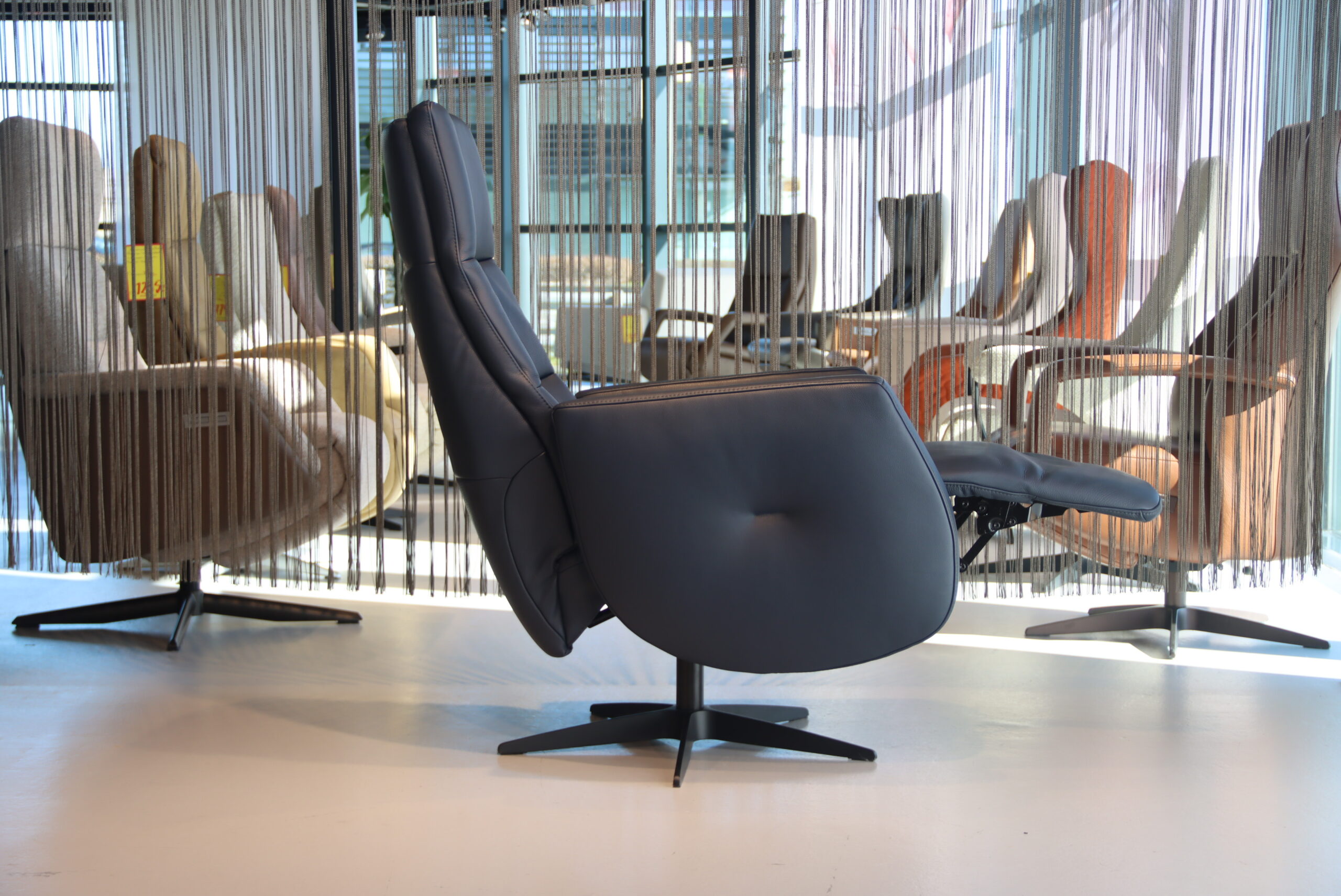 Handmatige verstelbare Relaxfauteuil/Relaxstoel met gasveer Feelz FZ-R03A04 van De Toekomst in Leer kleur Navy. Direct Leverbaar.