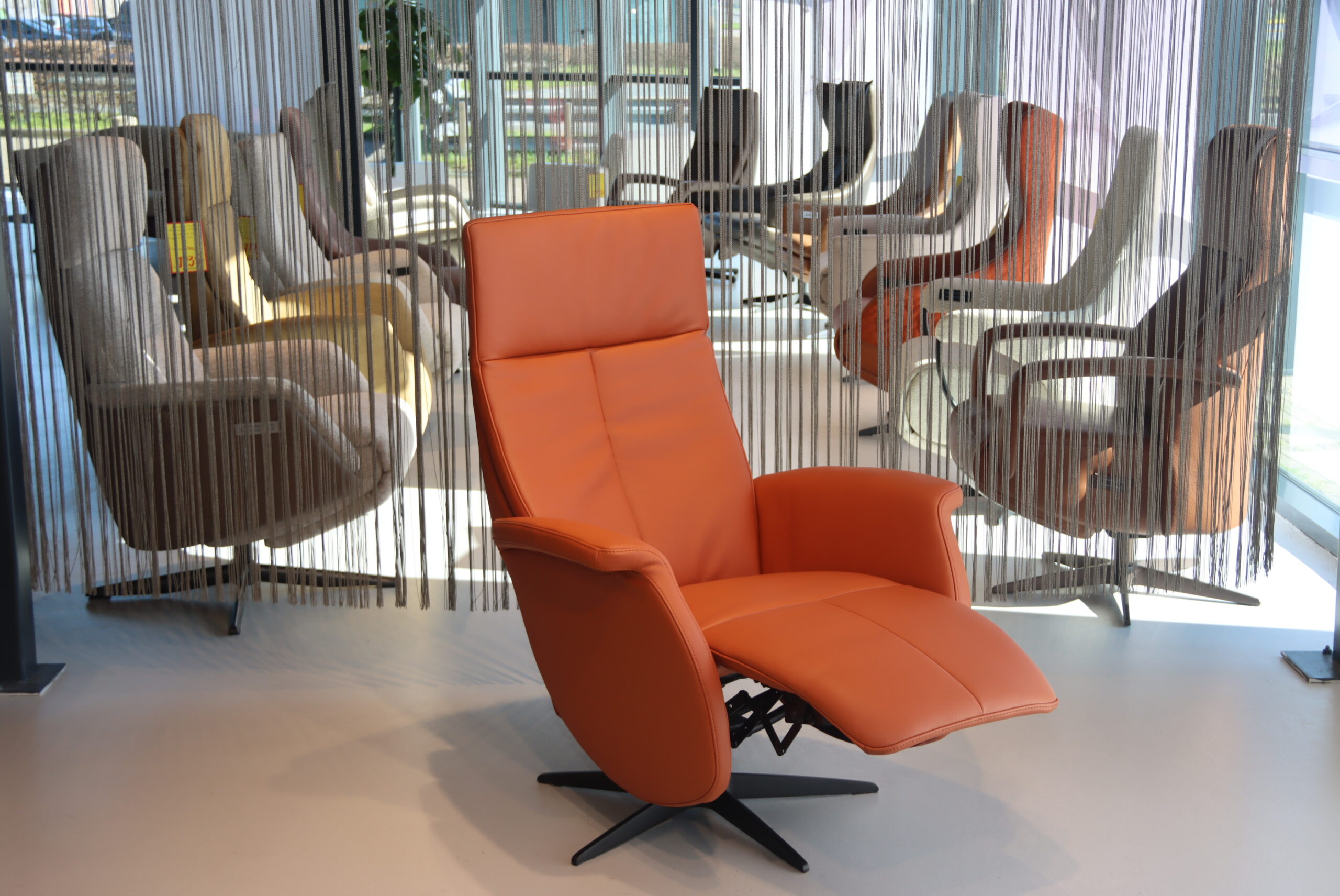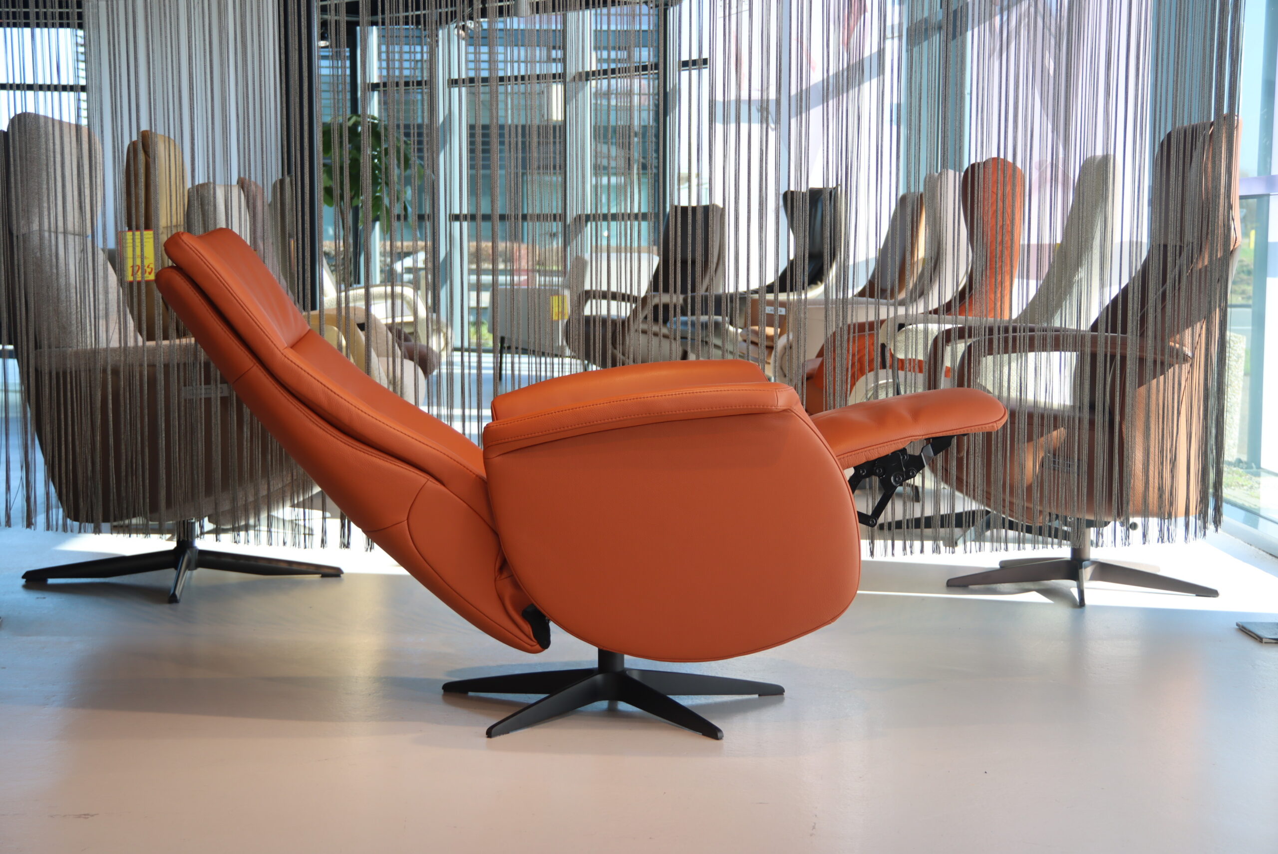 Handmatige verstelbare Relaxfauteuil/Relaxstoel met gasveer Feelz FZ-R06A06 van De Toekomst in Leer kleur Brandy. Direct Leverbaar.