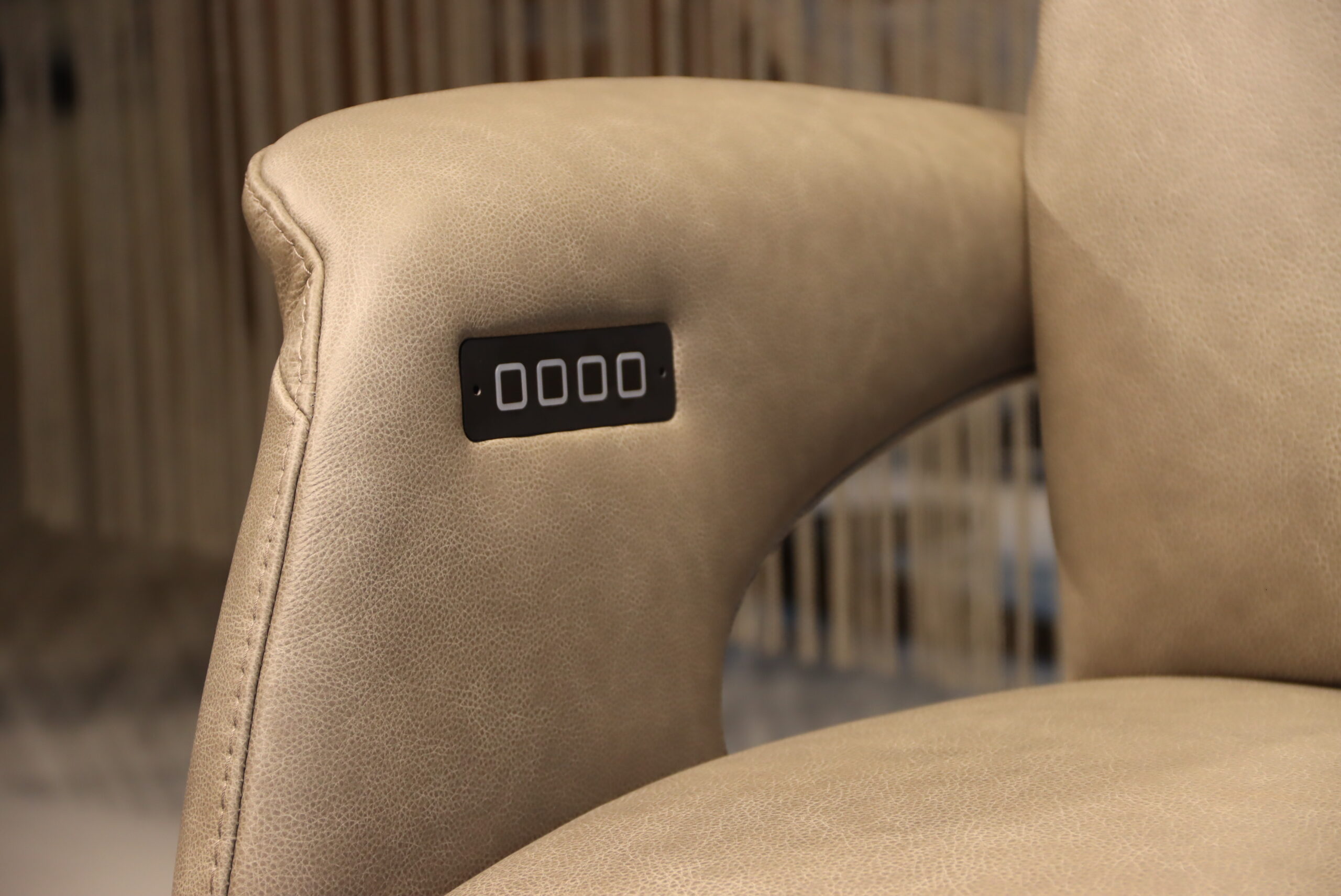 Uitvoering: Design (relax)fauteuil, elektrisch bedienbaar door middel van tiptoetsen en een verstelbare topswing (hoofd & nek ondersteuning), met accu dus u heeft geen kabels over de vloer.