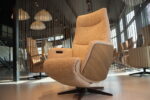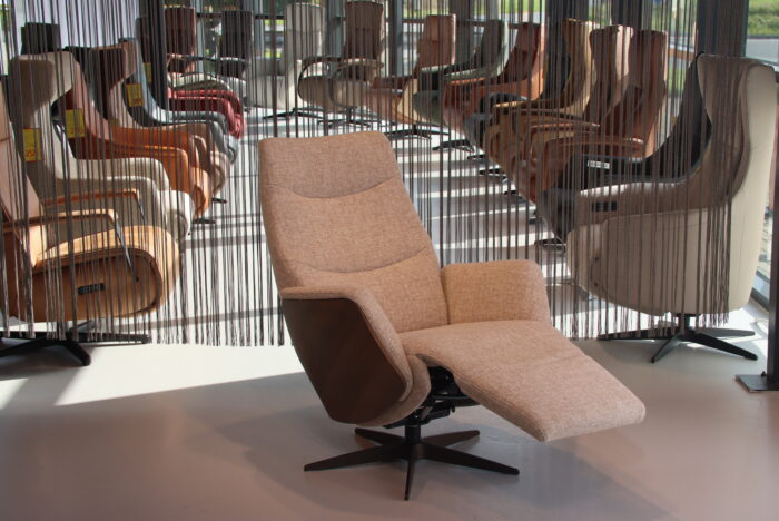 Relaxfauteuil Twice TW-274N met houten Schaal van De Toekomst in Ploegstof met 3 motoren en een accu. Direct leverbaar.